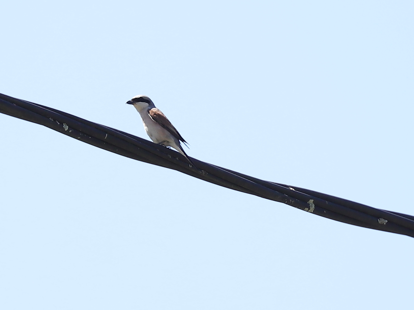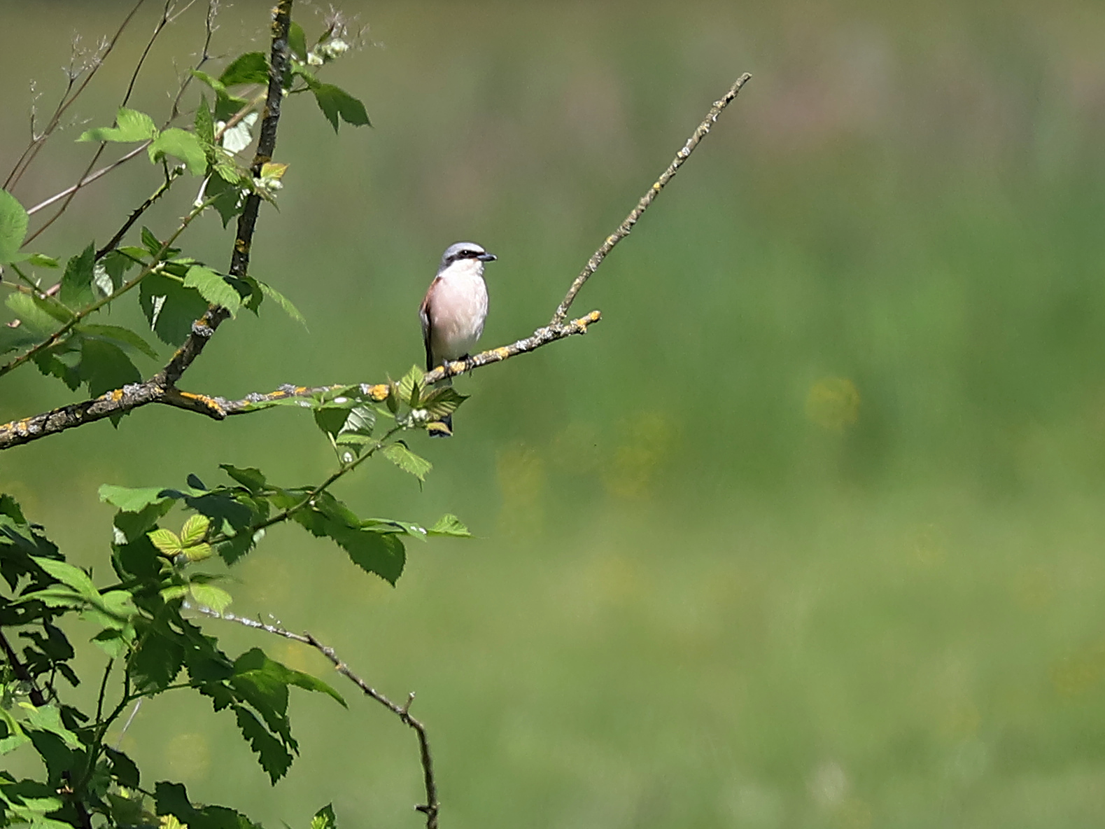 Un peu plus loin, c’est le mâle de Pie-grièche écorcheur Lanius collurio qui supervise son environnement.