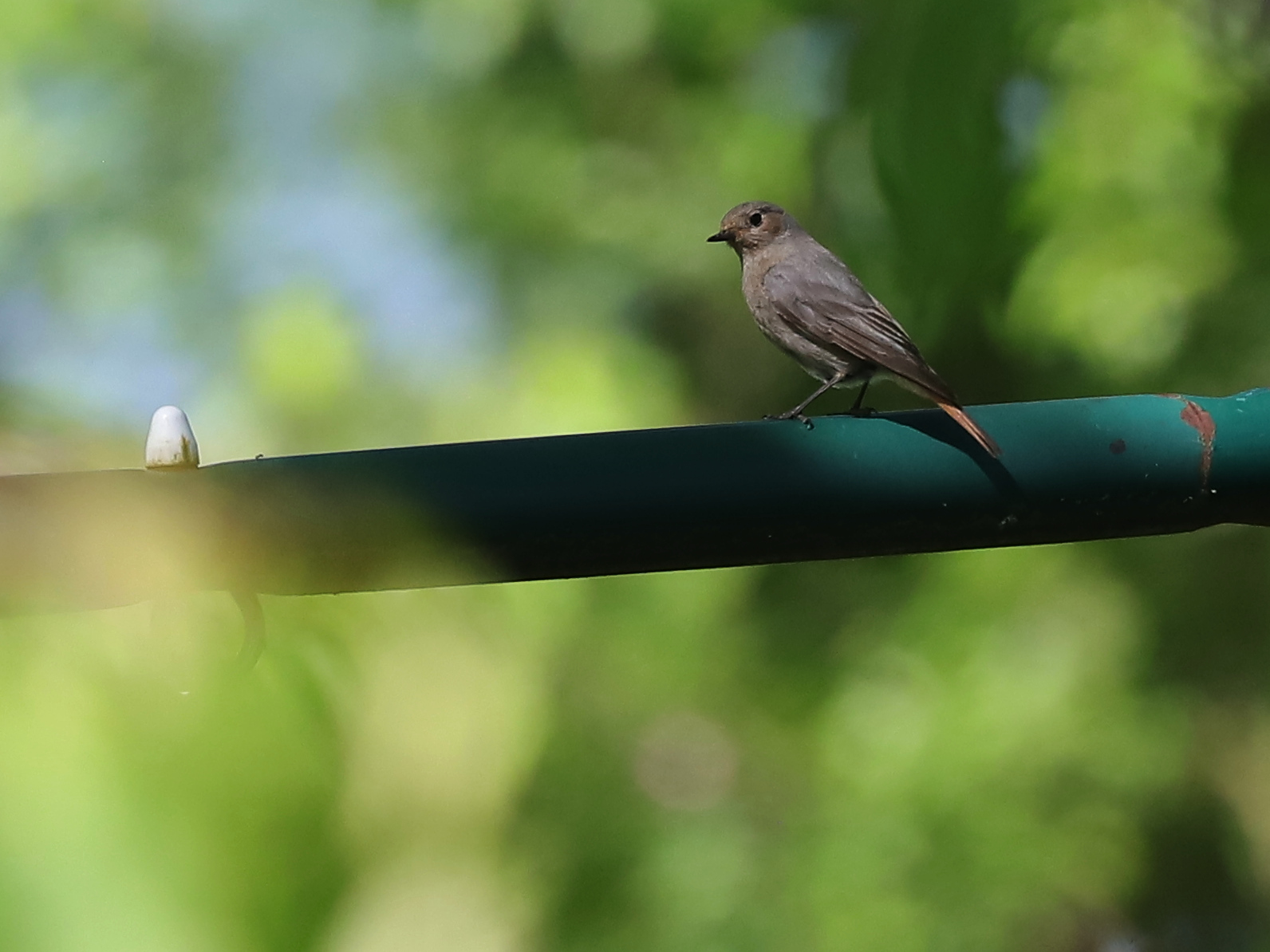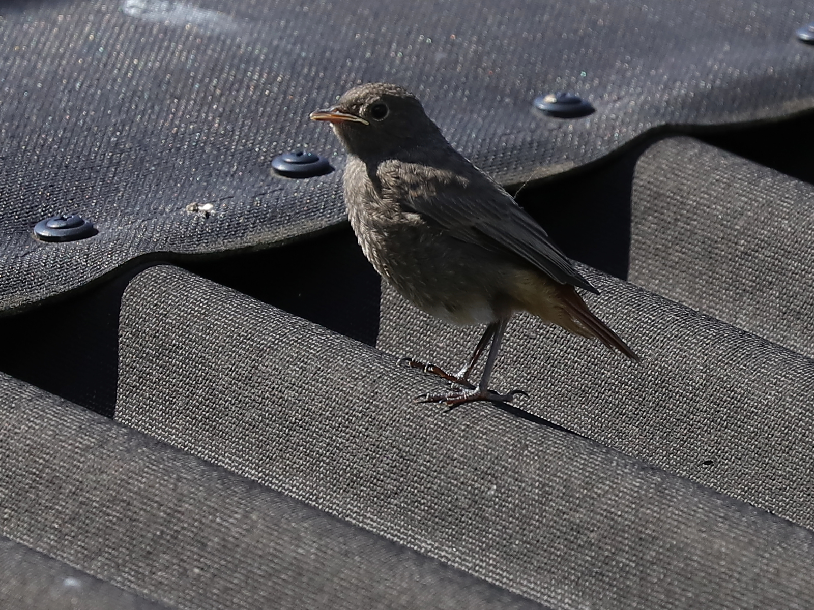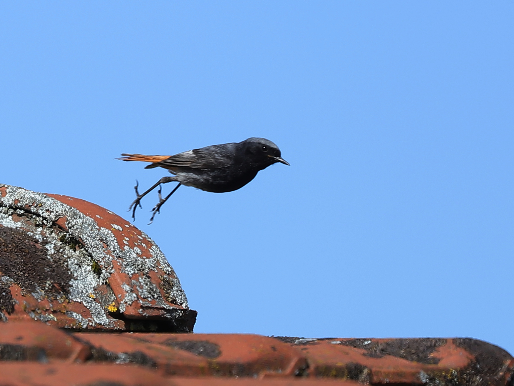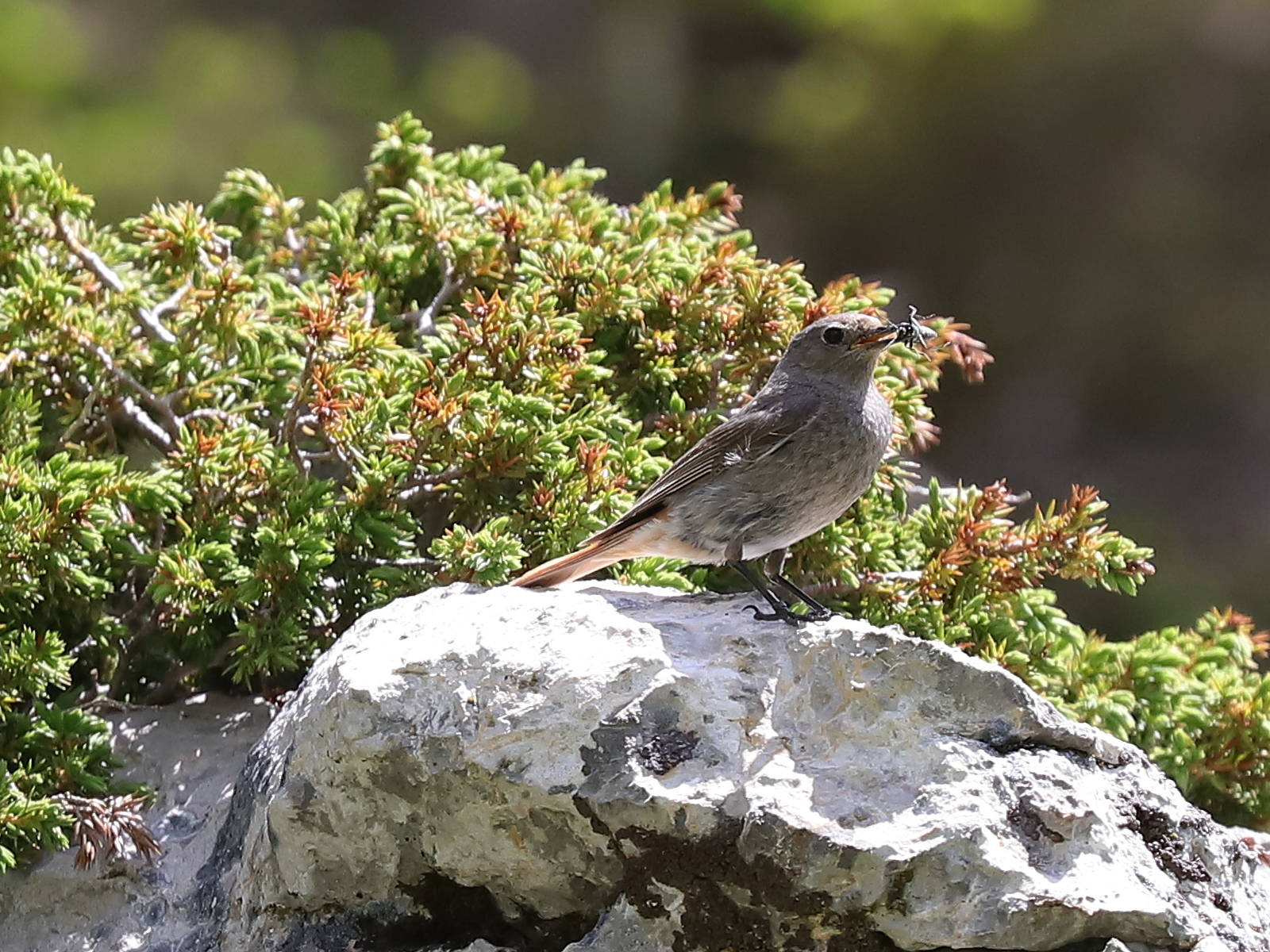 … et le Rougequeuenoir Phoenicurus ochruros, une femelle en premier puis un mâle, qui file rechercher de la nourriture après avoir donné la becquée a un jeune presque autonome.
