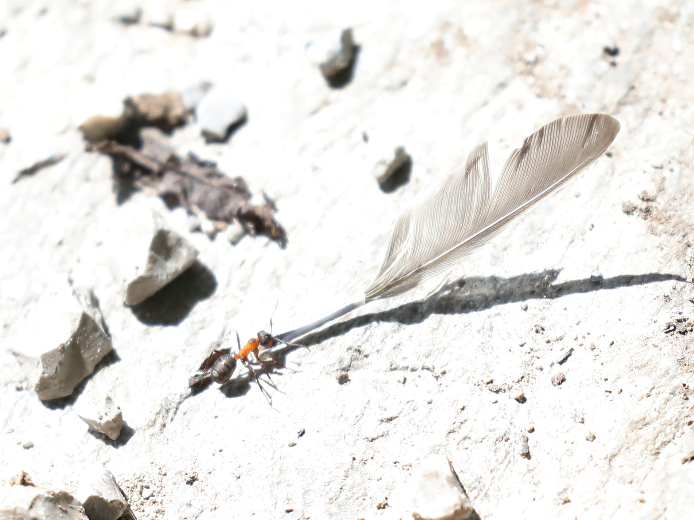 La star de la semaine : cette fourmi qui tente de transporter une plume. A chaque souffle d’air elle était entrainée par sa charge mais elle n’a pas lâché prise. Je ne sais ce qu’elle comptait en faire, je n’ai jamais vu une plume entrer dans une fourmilière … mais je n’ai certainement pas tout vu.