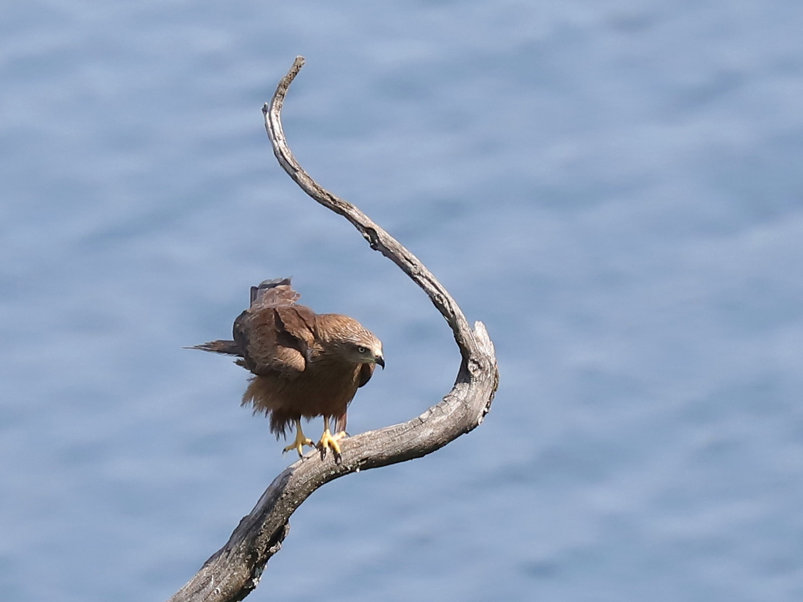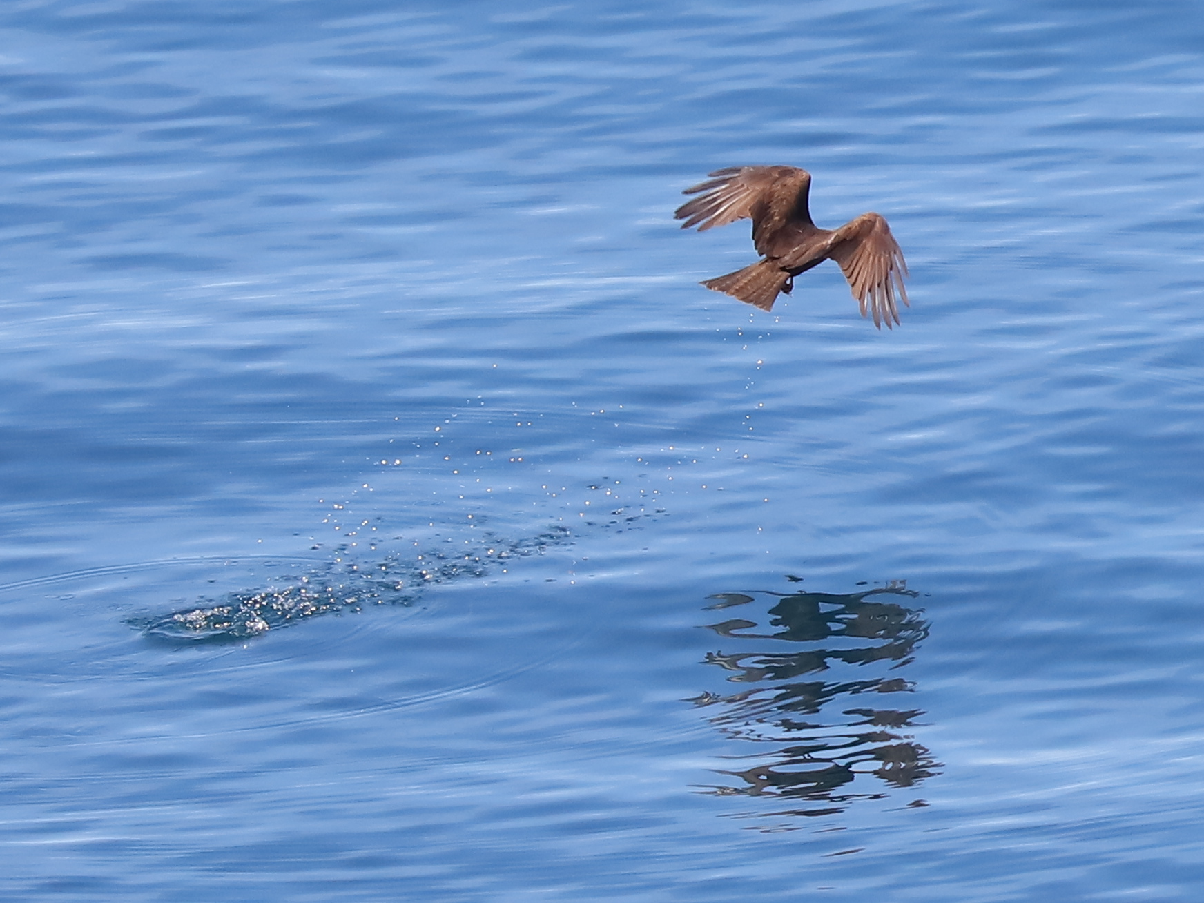 A propos de nourriture, j’ai pu photographier depuis mon balcon un Milan noir Milvus migrans en pleine pêche. Il a ensuite consommé son poisson en vol.