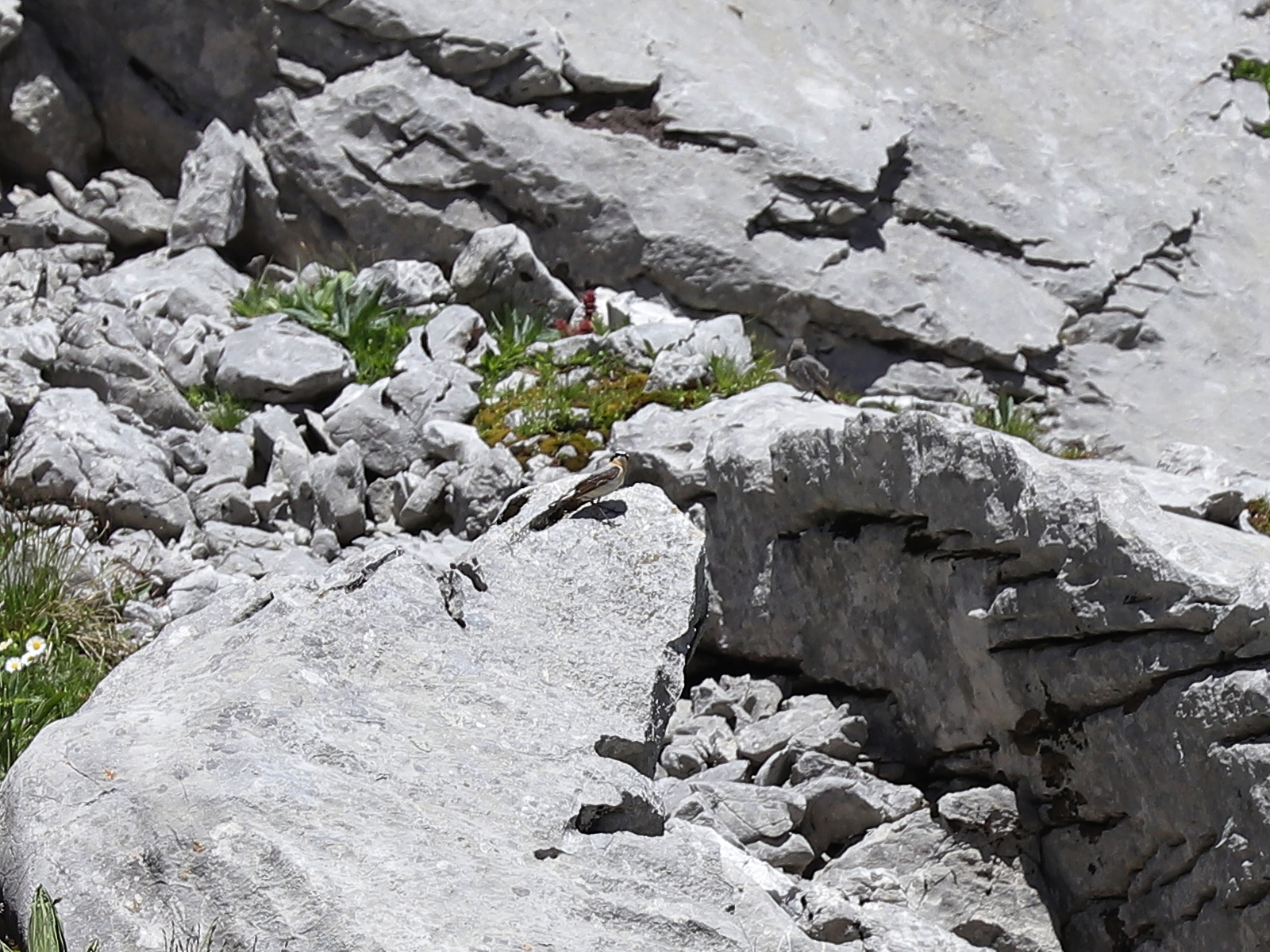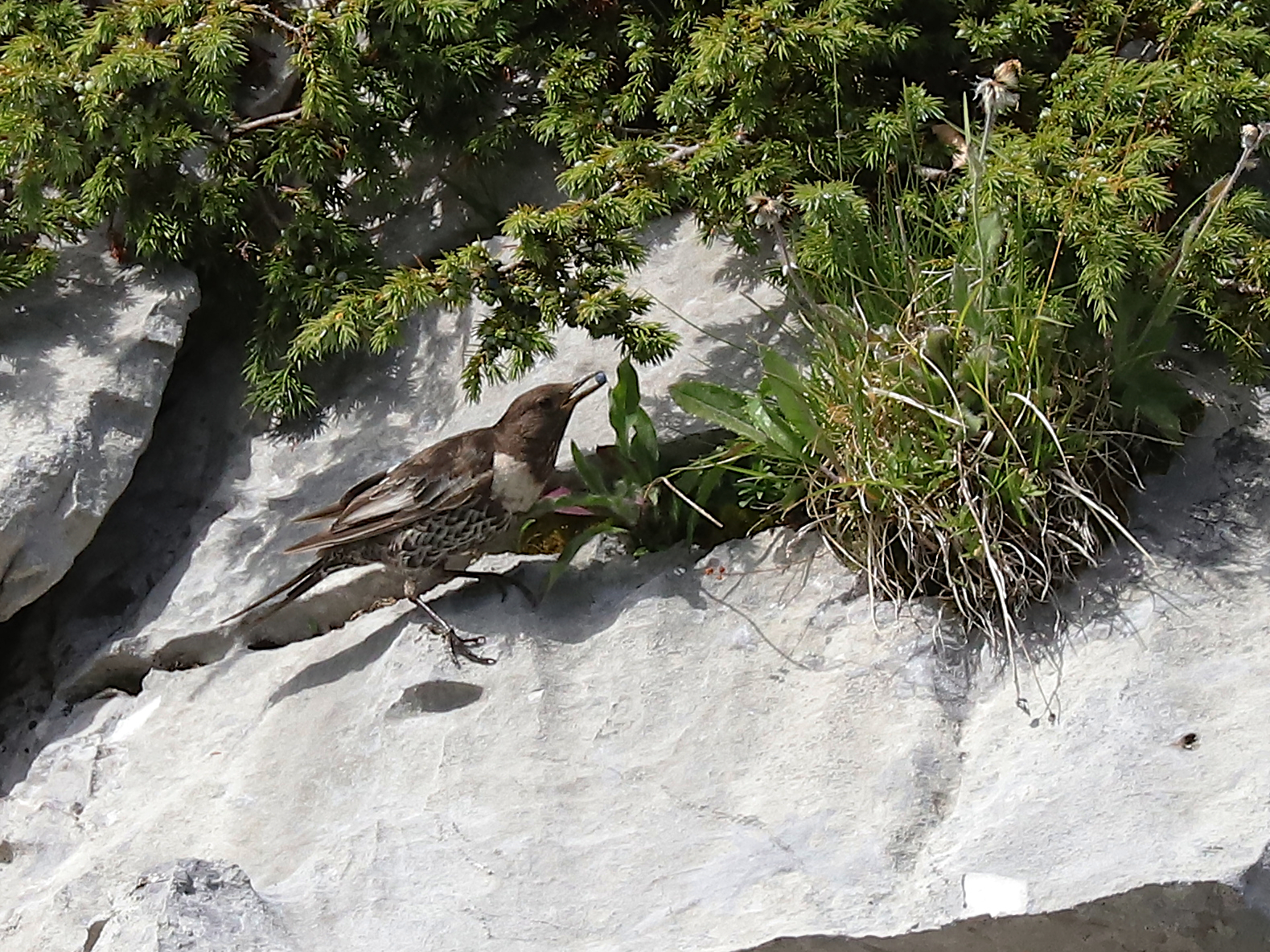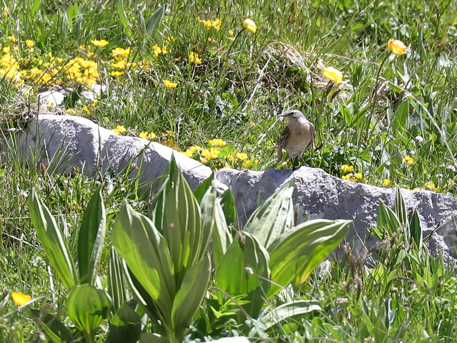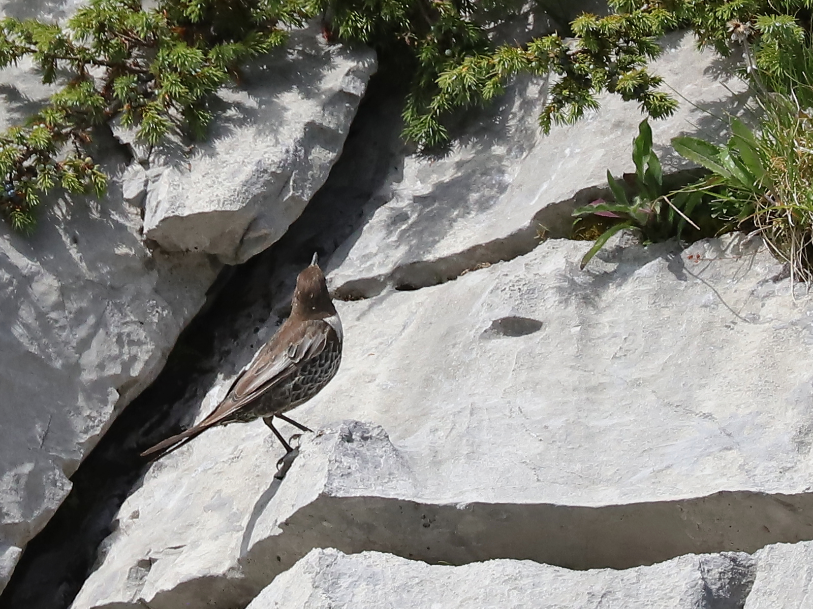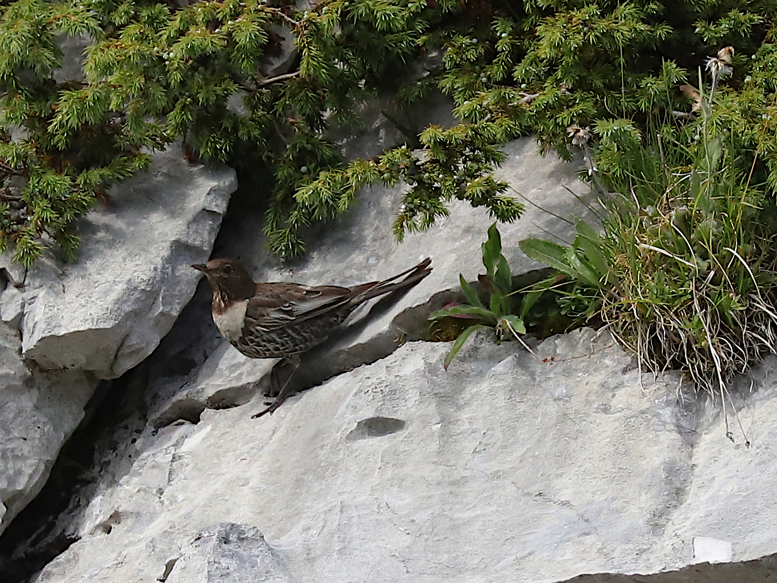 J’ai tenté de voir à nouveau le Merle à plastron Turdus torquatus déjà vu lors de randonnées précédentes, et j’en ai retrouvé. Le motif en écailles de la poitrine et du ventre est caractéristique de la sous-espèce alpestris.
