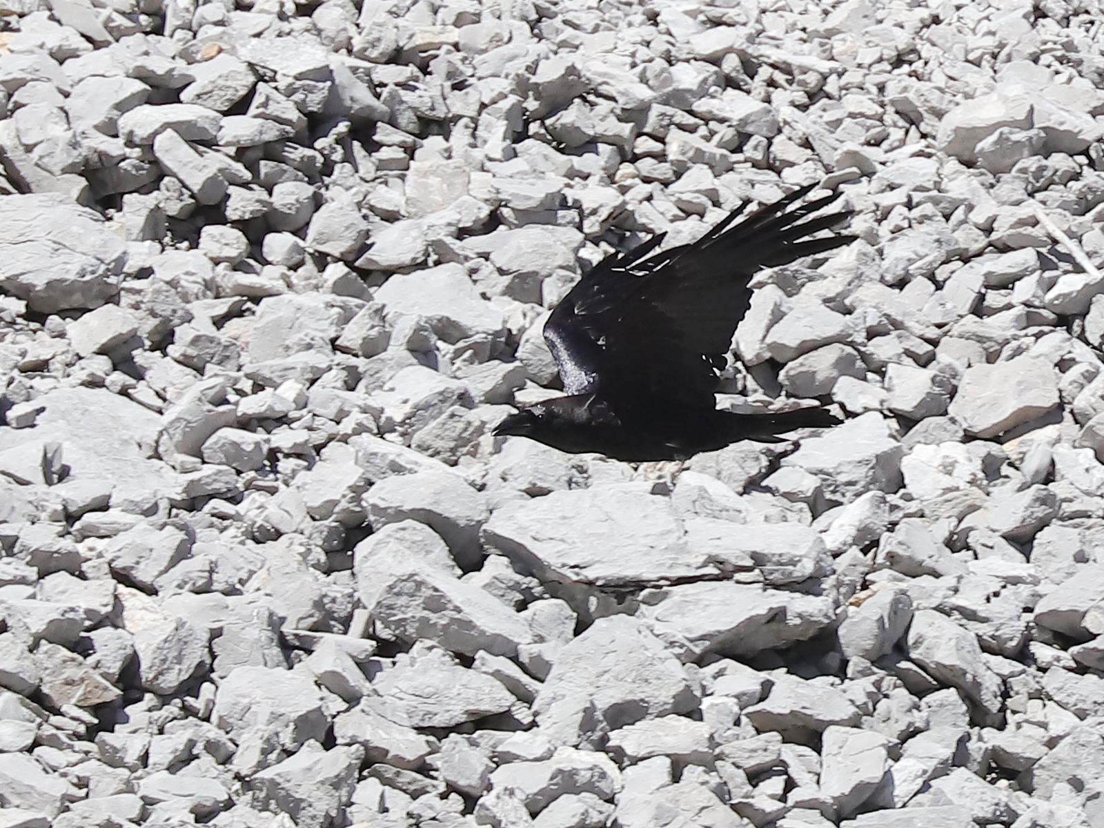 En montagne, vers 1800m, plusieurs Grands corbeaux Corvus corax se sont réunis pour croasser ensemble avant de repartir au-dessus des pierriers.
