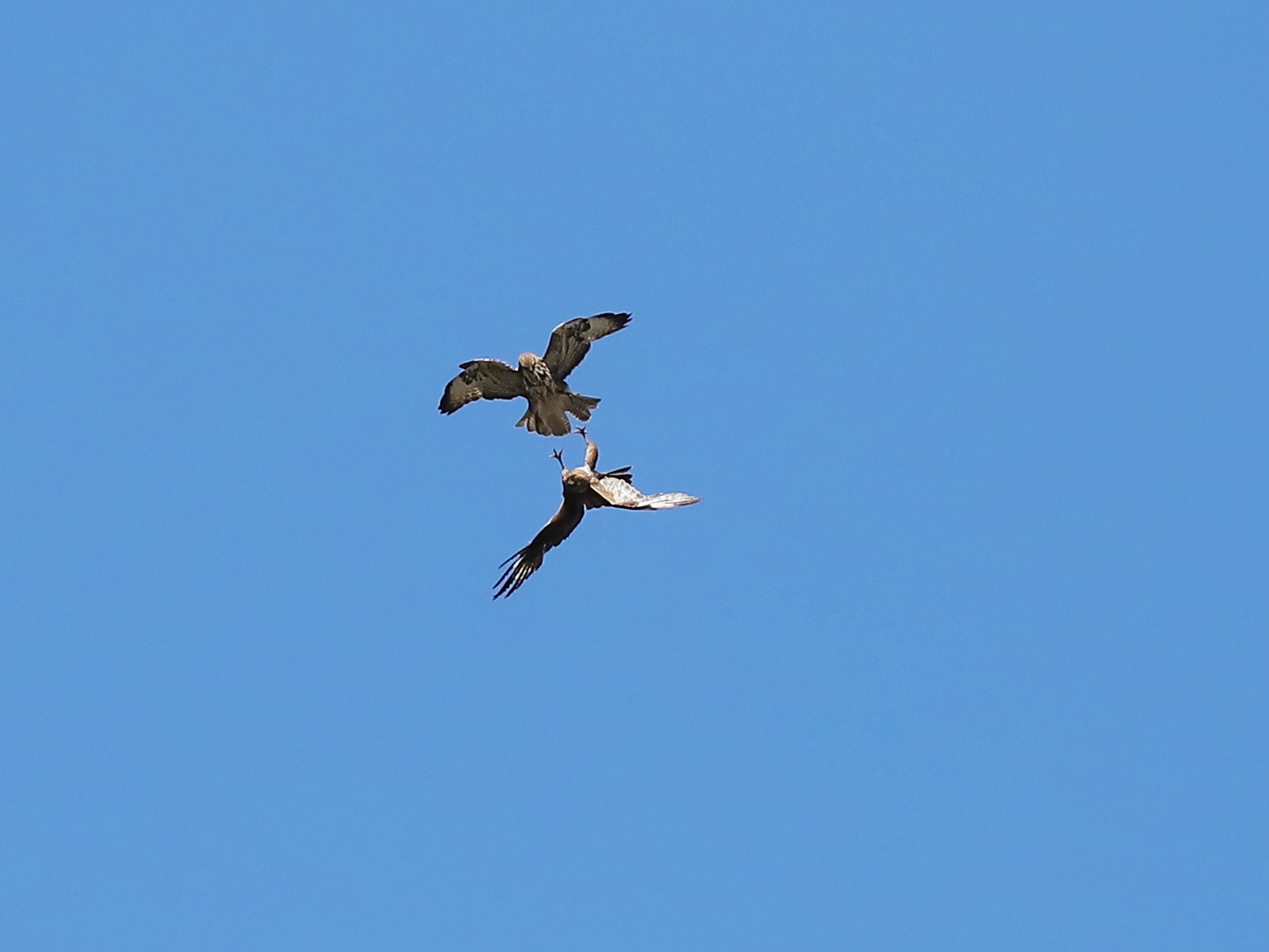 Pas de philosophie pour les Buses variables Buteo buteo mais quelques joutes aériennes.
