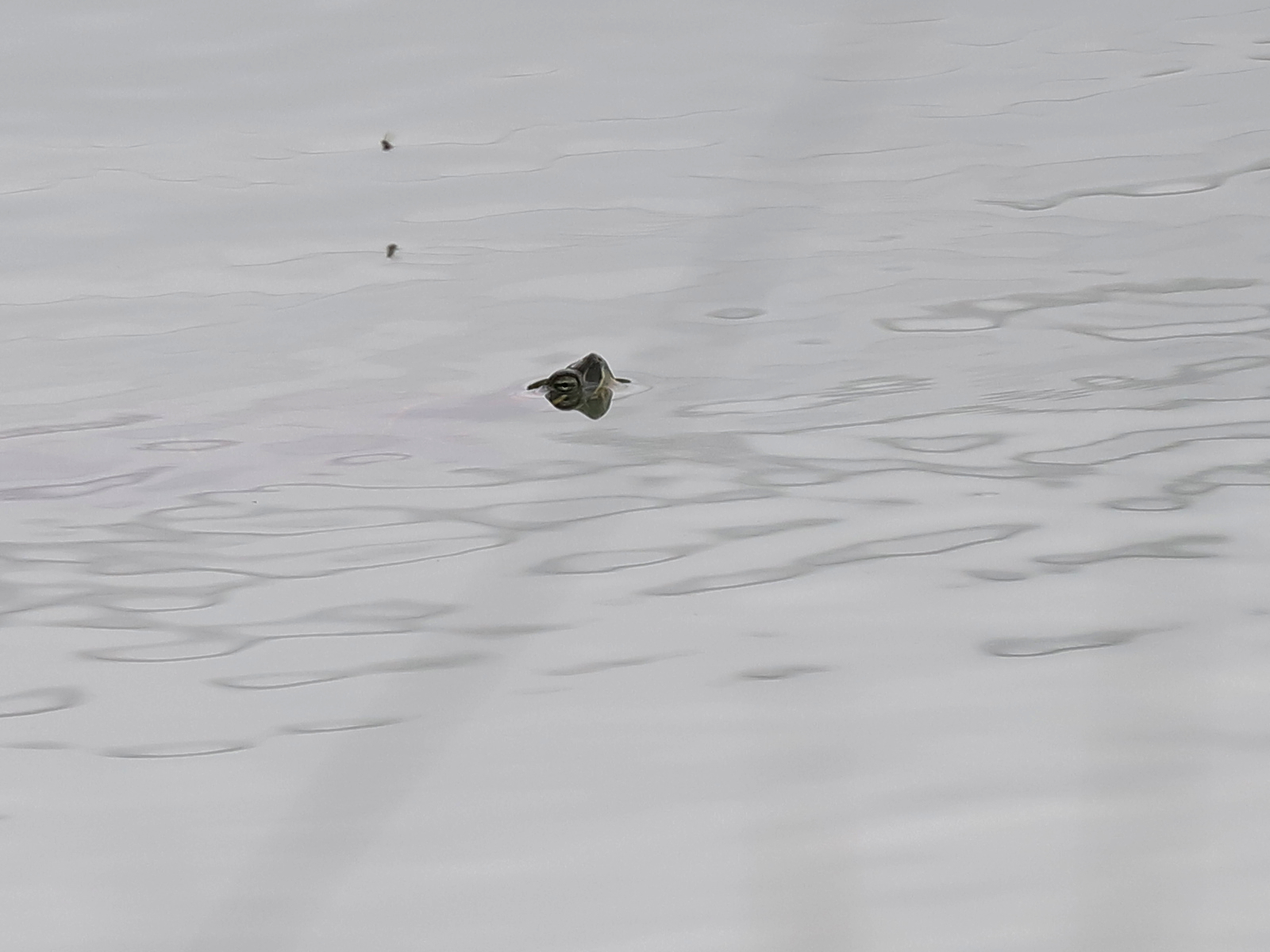Un Frelon européen Vespa crabro est venu boire au bord d’une mare. Je l’ai trouvé un peu alourdi après. Comme quoi il faut boire avec modération !