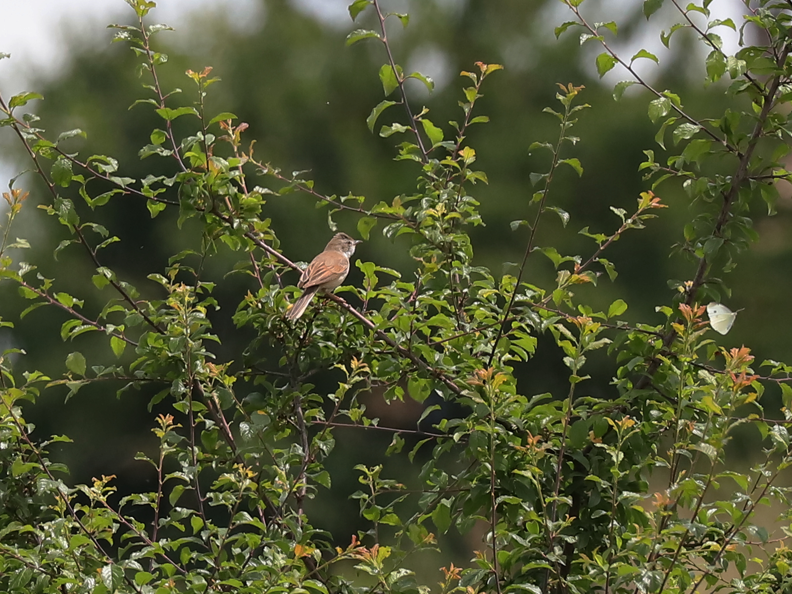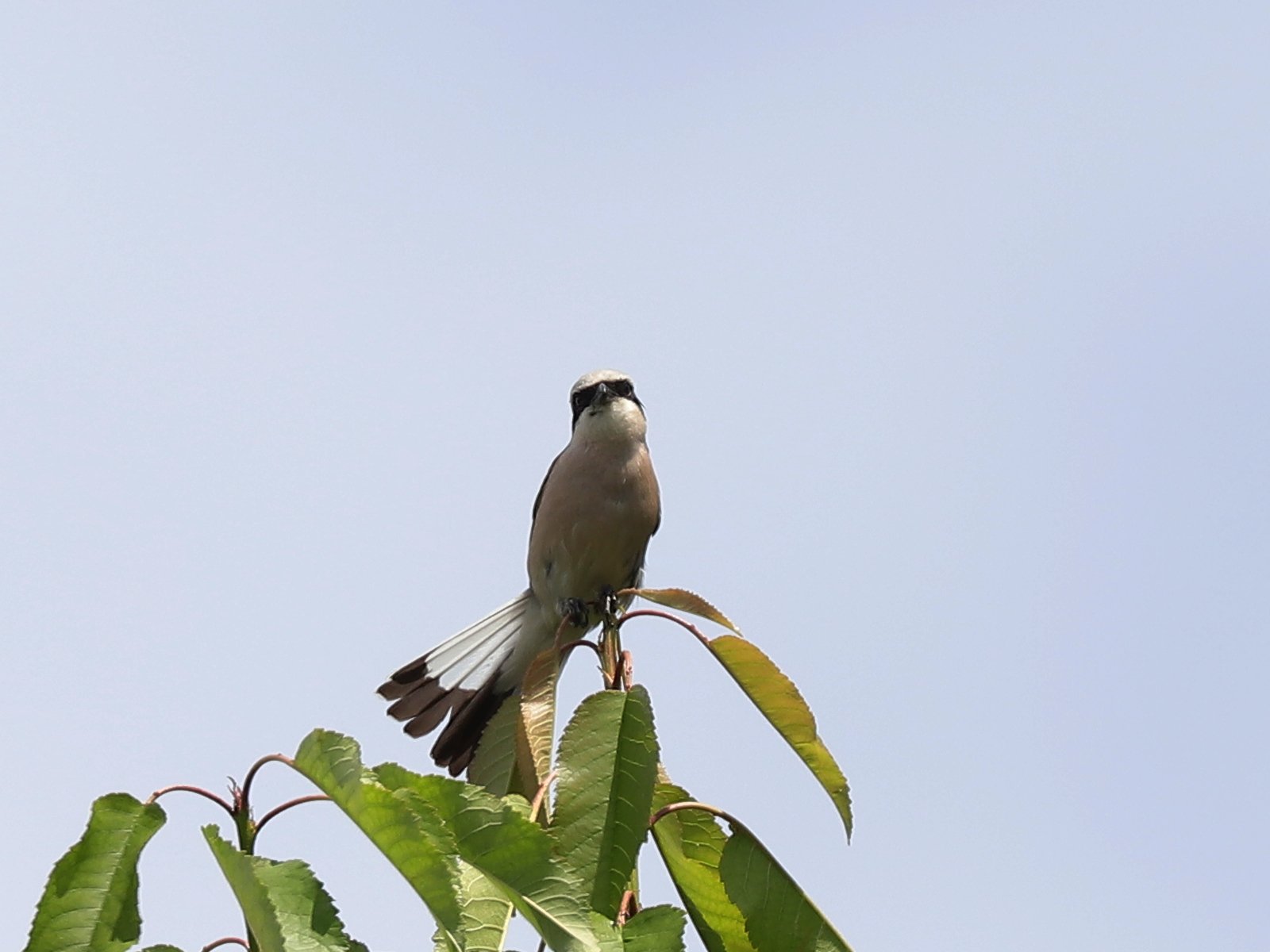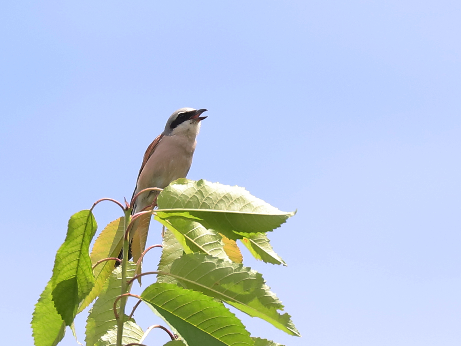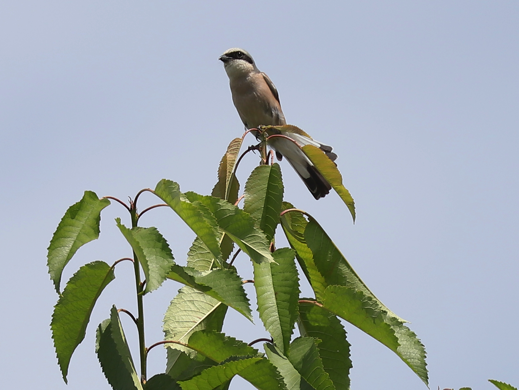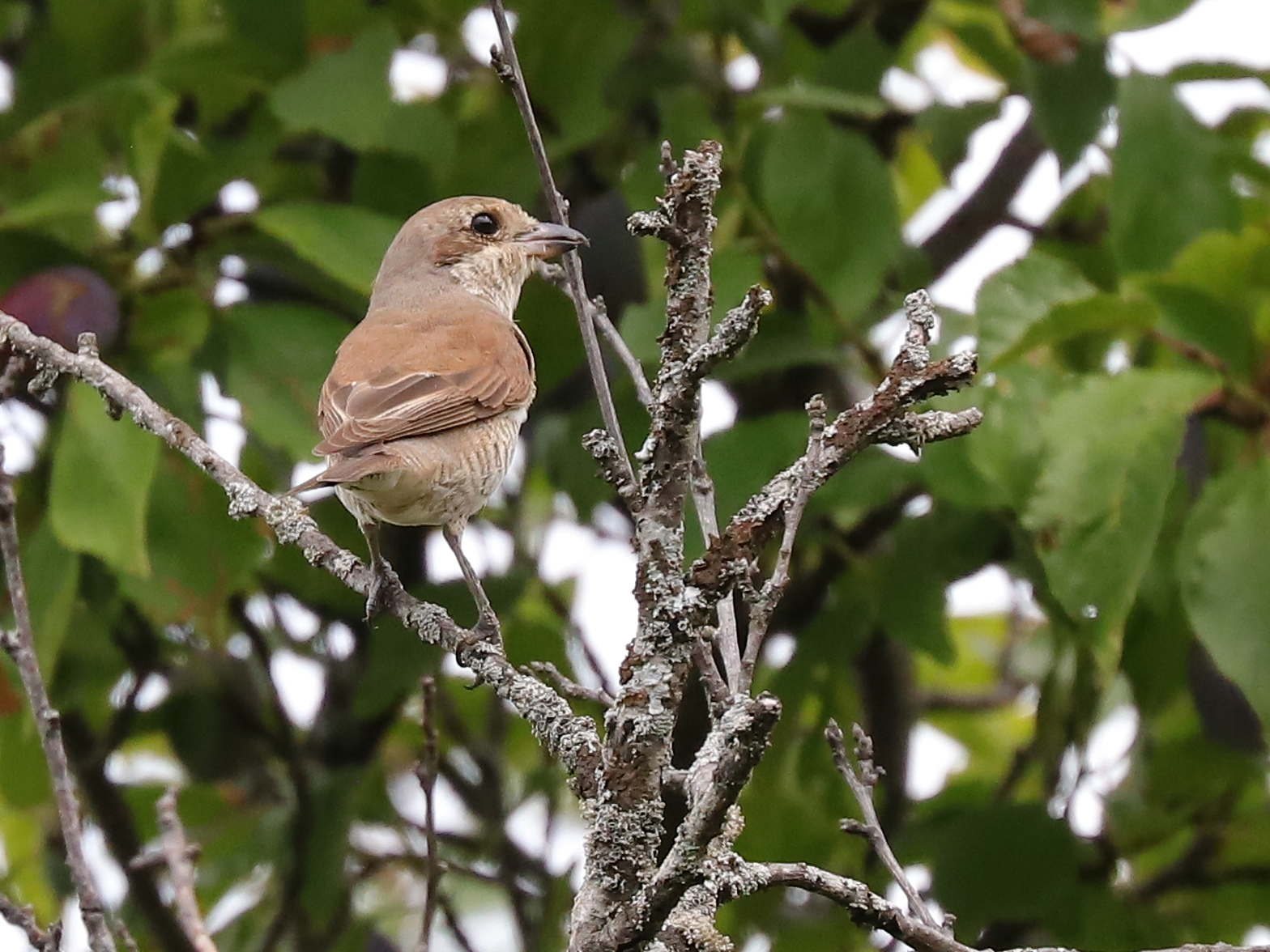 Les Pie-grièches écorcheurs Lanius collurio sont devenues plus visibles depuis quelques jours, les jeunes sont sortis des nids, capables de voler. En observant bien les branches de cerisier, on voit qu’il y a jusque 4 oiseaux, probablement une femelle et trois jeunes.