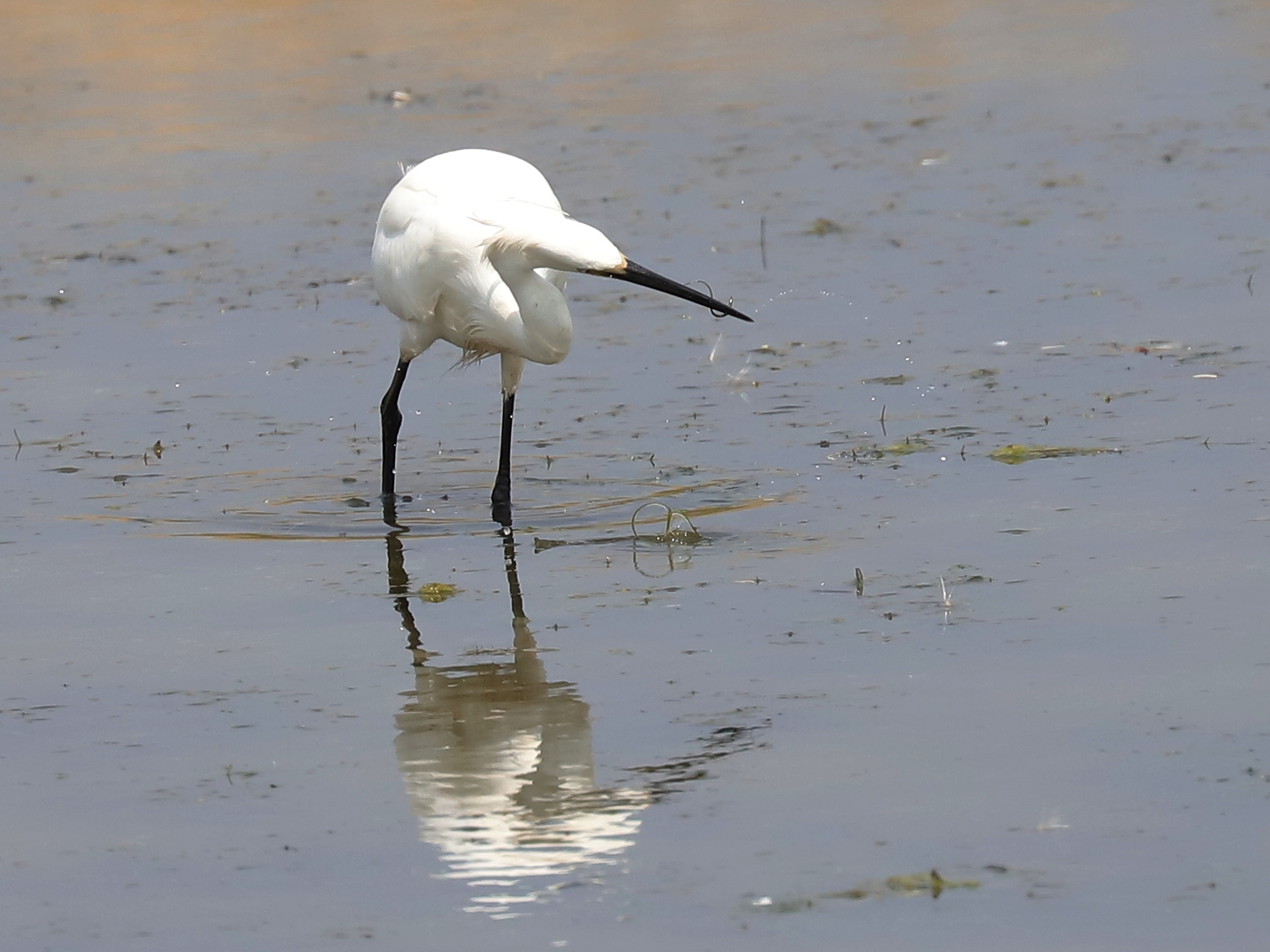 Une Aigrette garzette, venue se poser non loin de moi, a démontré ses talents à la pêche. Je ne suis malheureusement pas capable d’identifier ce qu’elle a capturé.