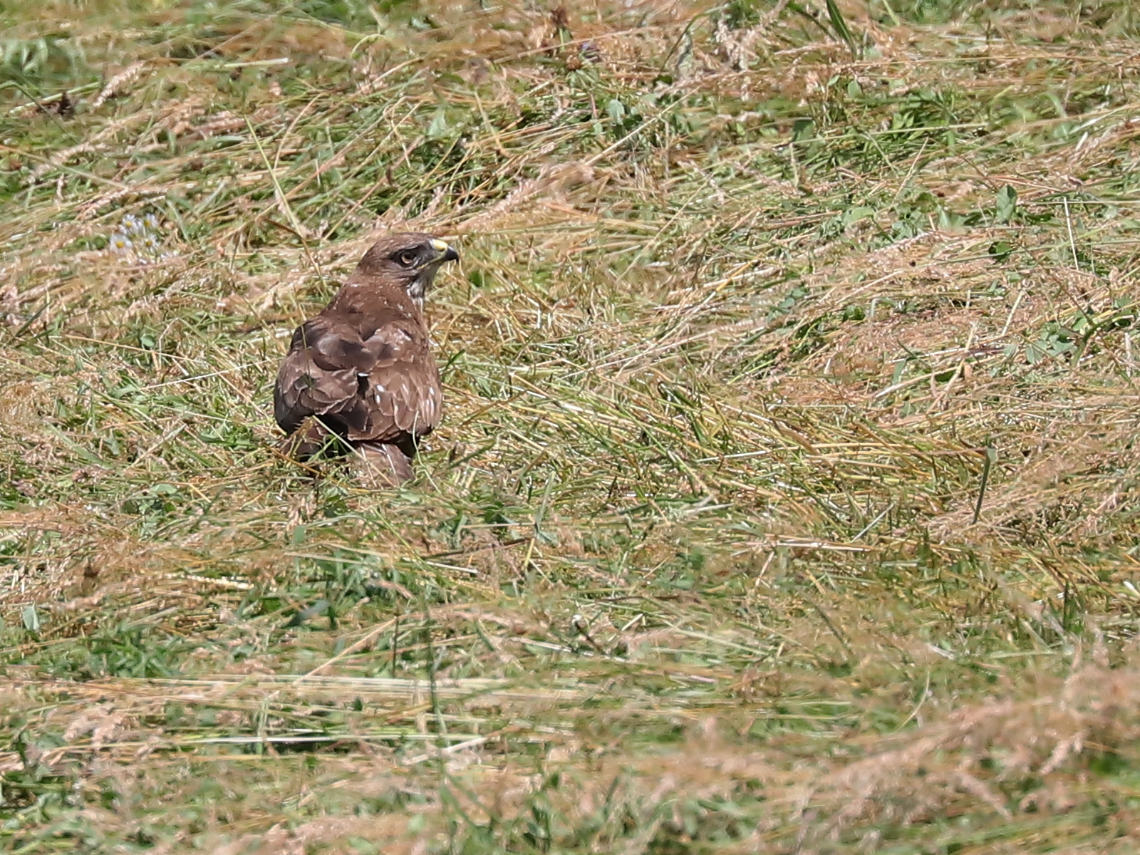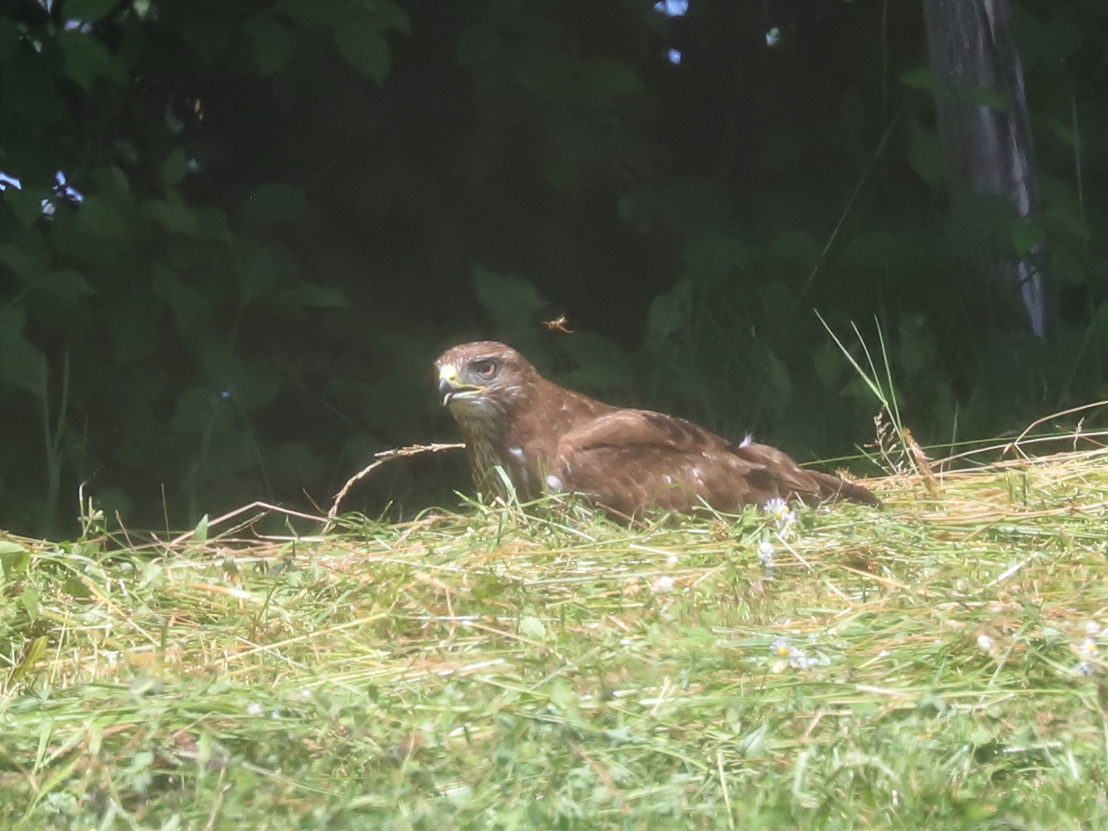 Outre la buse, des Milans noirs Milvus migrans ont cerclé au-dessus du pré mais aucun d’eux n’est venu se poser.