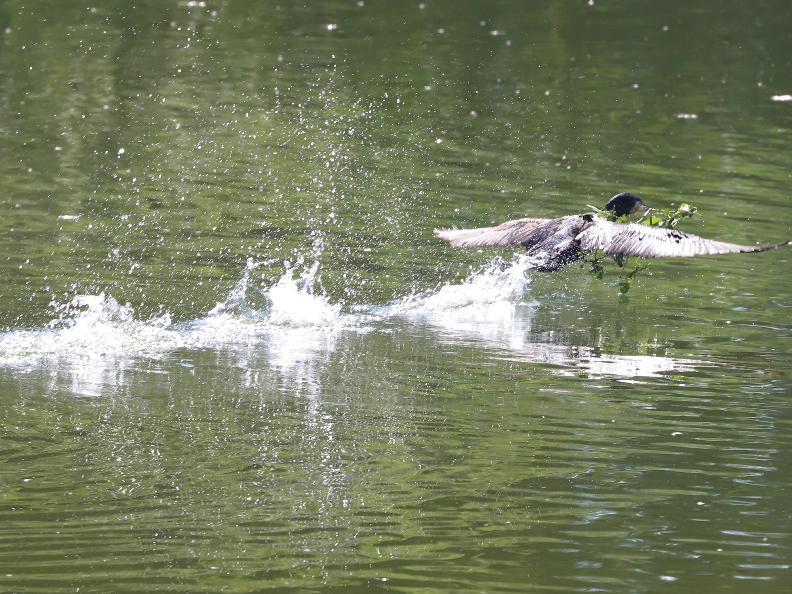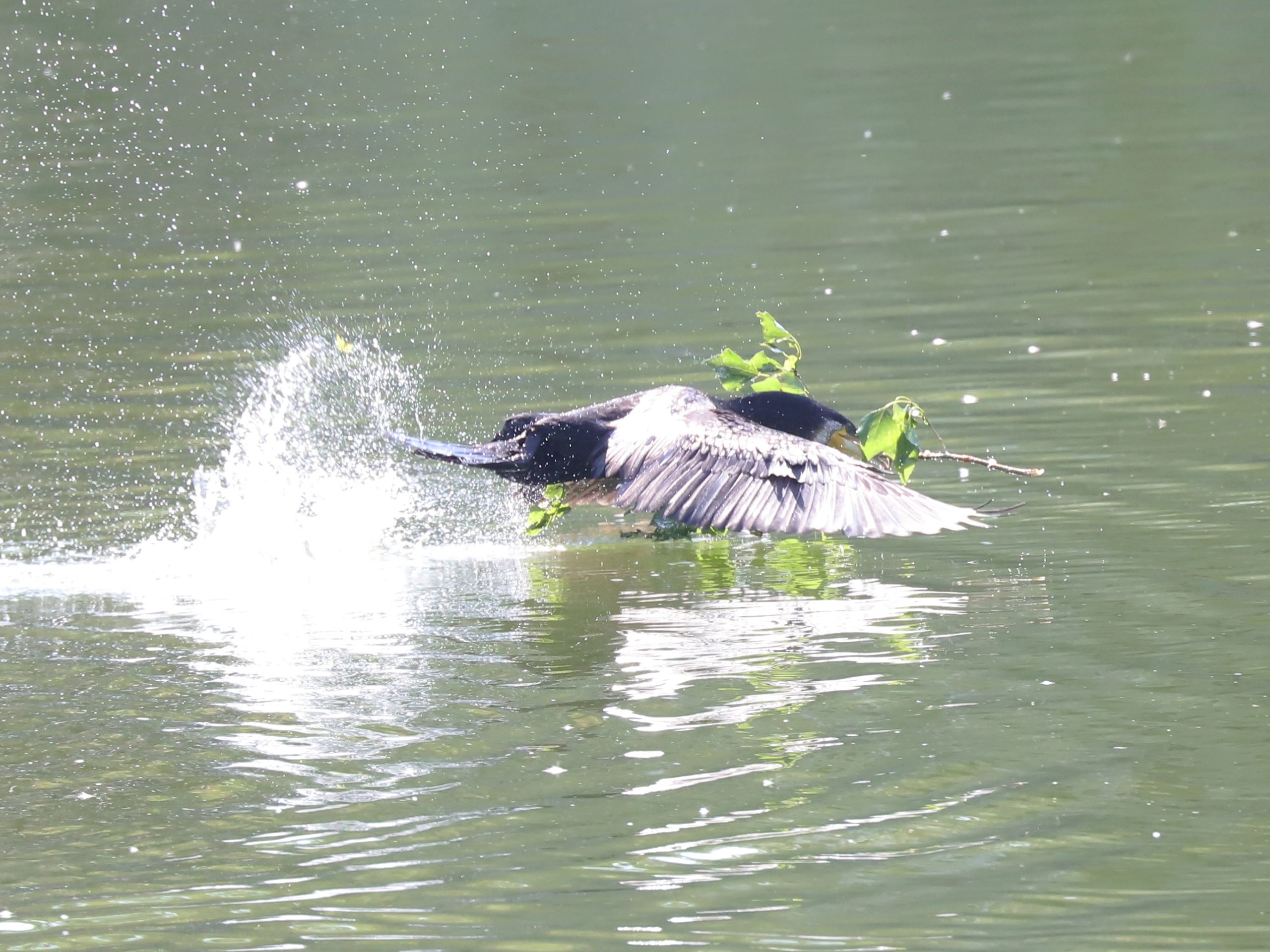 Certains Grands cormorans Phalacrocorax carbo partent pêcher seuls et d’autres en groupe, je ne sais pourquoi. Ce qui est certain, c’est l’odeur particulièrement soutenue de vieux poisson qui règne autour des nids.