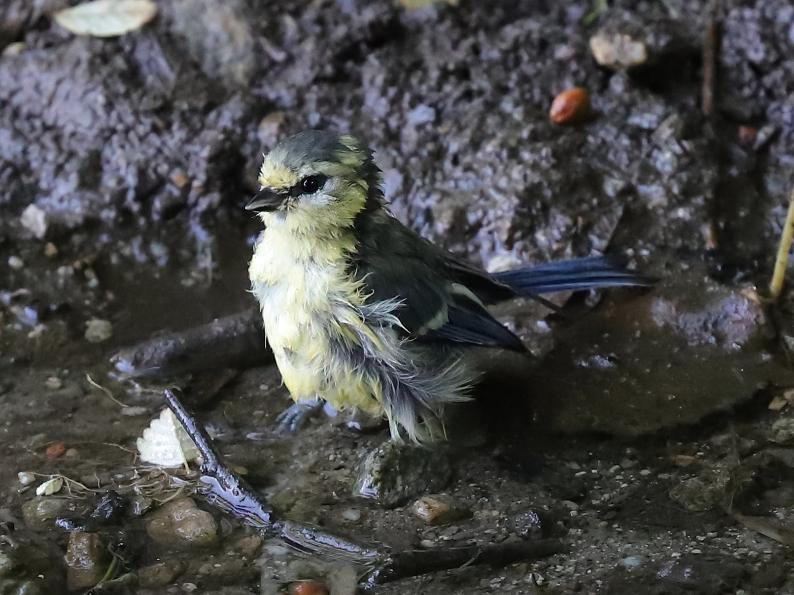 J’ai eu des difficultés à cerner l’oiseau des deux premières images mais c’est plus facile quand on peut comparer à une photo du même oiseau encore sec : Mésange bleue Cyanistes caeruleus.