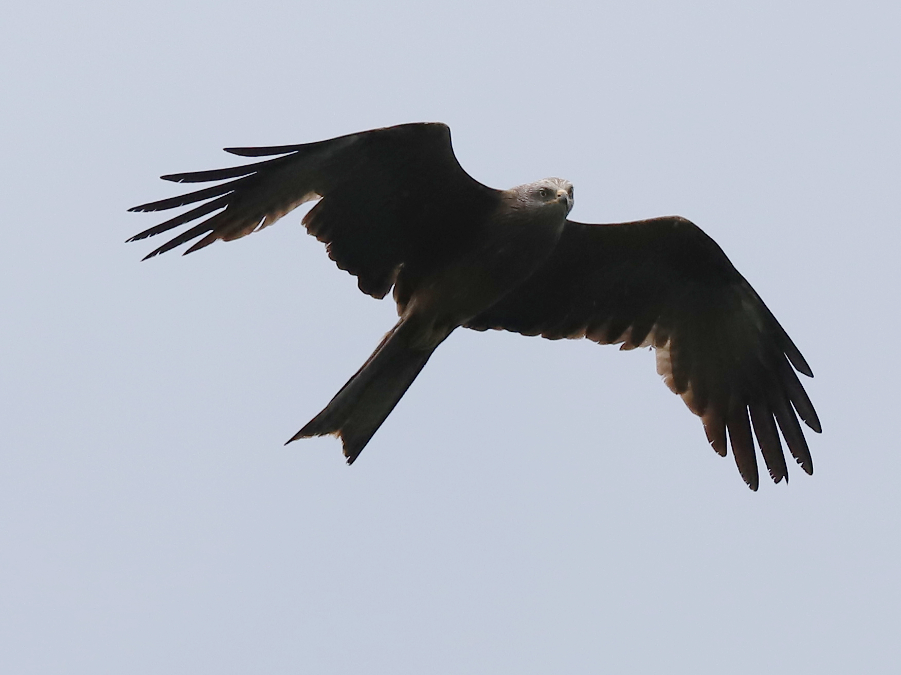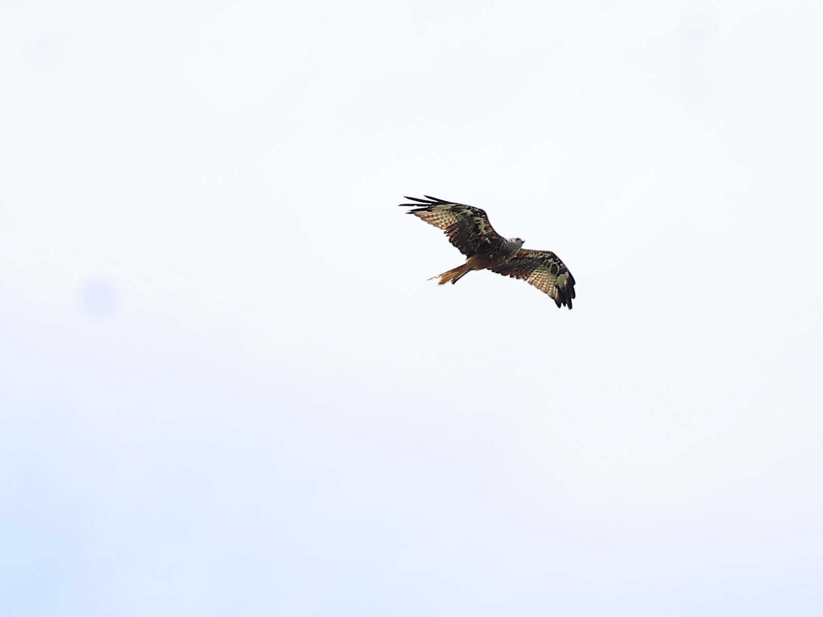 Les Milans royaux Milvus milvus ont aussi entamé leur migration. celui-ci est un peu atypique par les marques blanches sur le bord d’attaque des ailes.