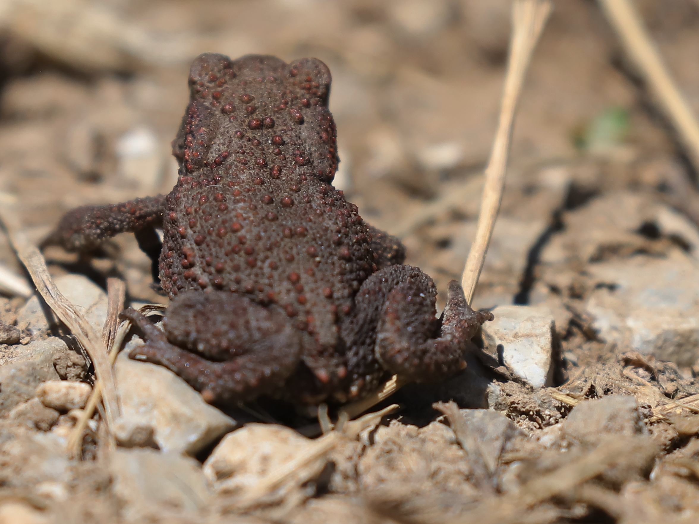 … de tout petits batraciens apparaissent, charmants par leur petite taille de quelques centimètres mais très boutonneux, ce sont des Crapauds communs Bufo bufo.