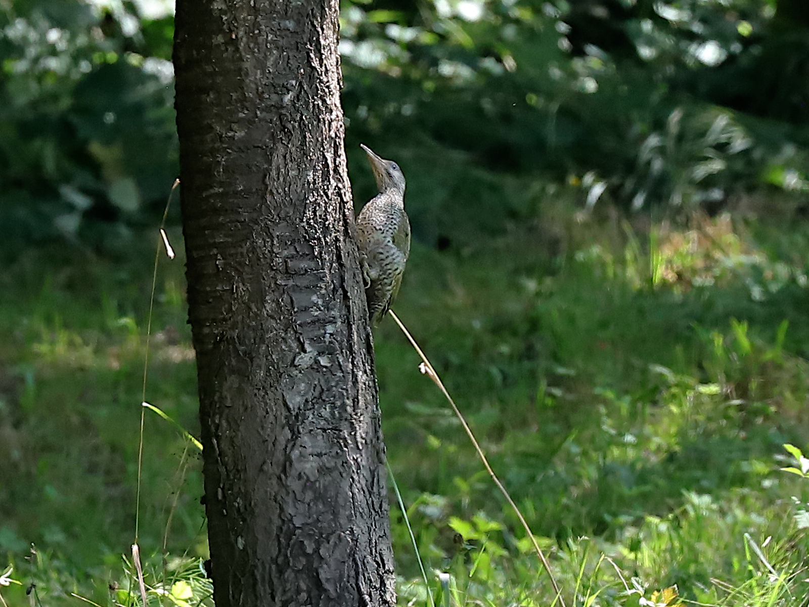 … un Pic vert Picus viridis qui a la bonne couleur sur le dos mais pas encore sur la tête et les joues …