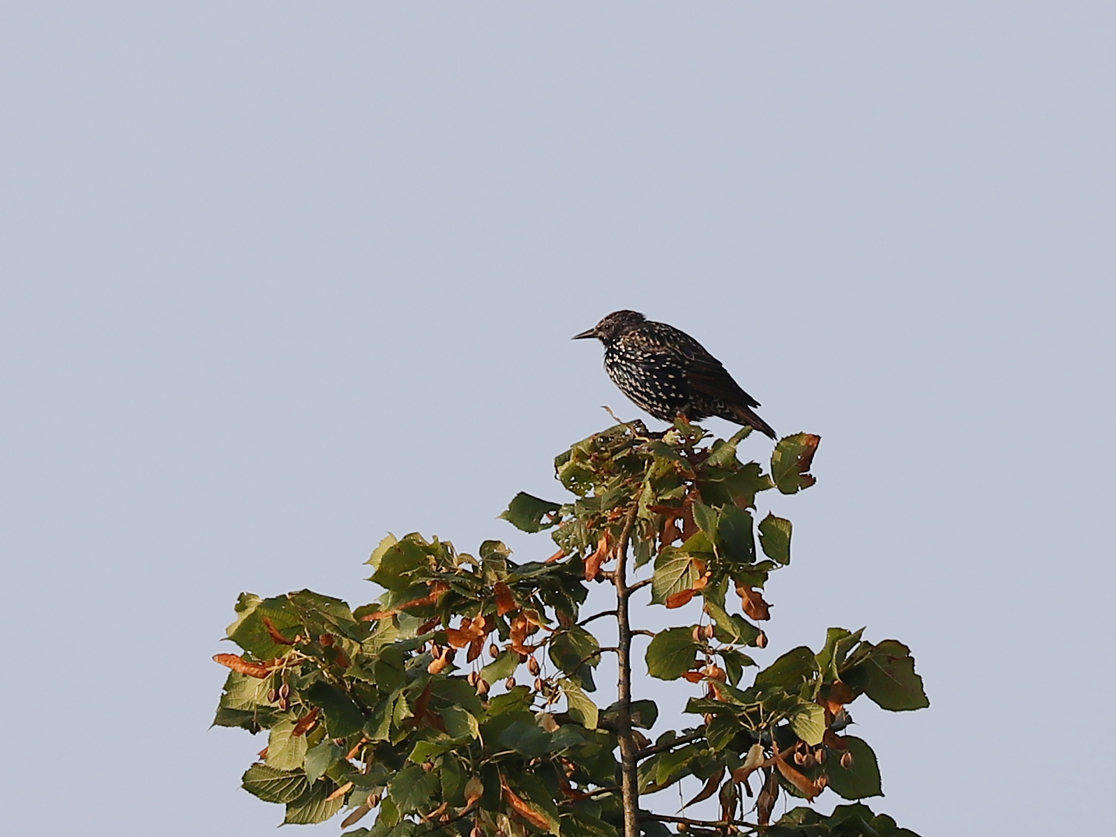 Toujours en Charente maritime, les Etourneaux sansonnets Sturnus vulgaris sont regroupés et vont piller le vignes car le raisin mûrit. Celui-ci serait un solitaire ? ou a-t-il tout bonnement le ventre plein ?