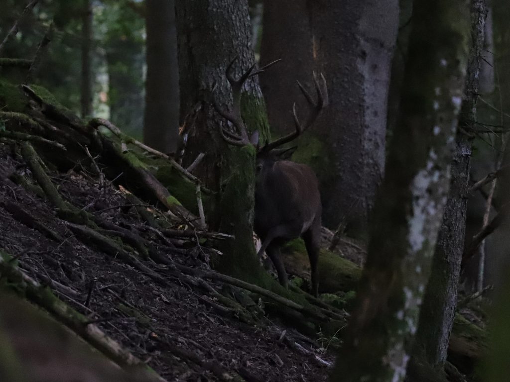 Ce sont probablement les dernières photos de cerfs de la saison, le brame est fini et la forêt est redevenue silencieuse. Deux premières images, un petit jeune d’un an, à voir les bois, puis du beau mâle adulte.