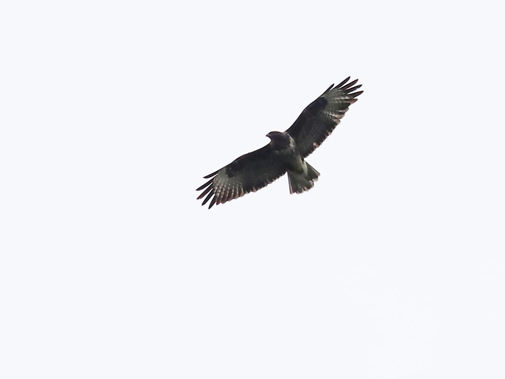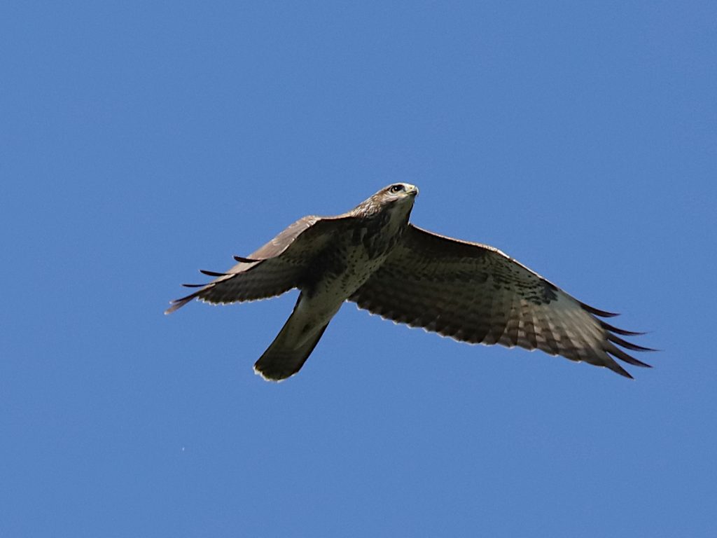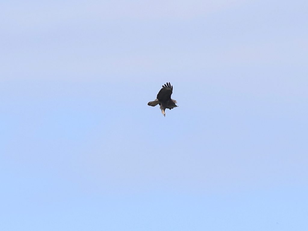 Ces Buses variables Buteo buteo sont de passage. L’absence de barre sombre à la queue indique un oiseau de l’année. En troisième photo, l’oiseau est en mue, il y a deux nouvelles plumes à la base de la queue.
