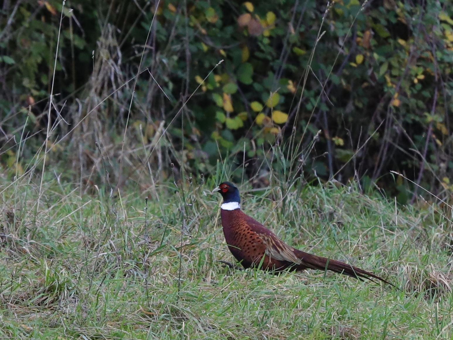 Cette semaine prend fin en espérant que ce joli Faisan survive aux journées de chasse et continue à parader avec son faux-col blanc.