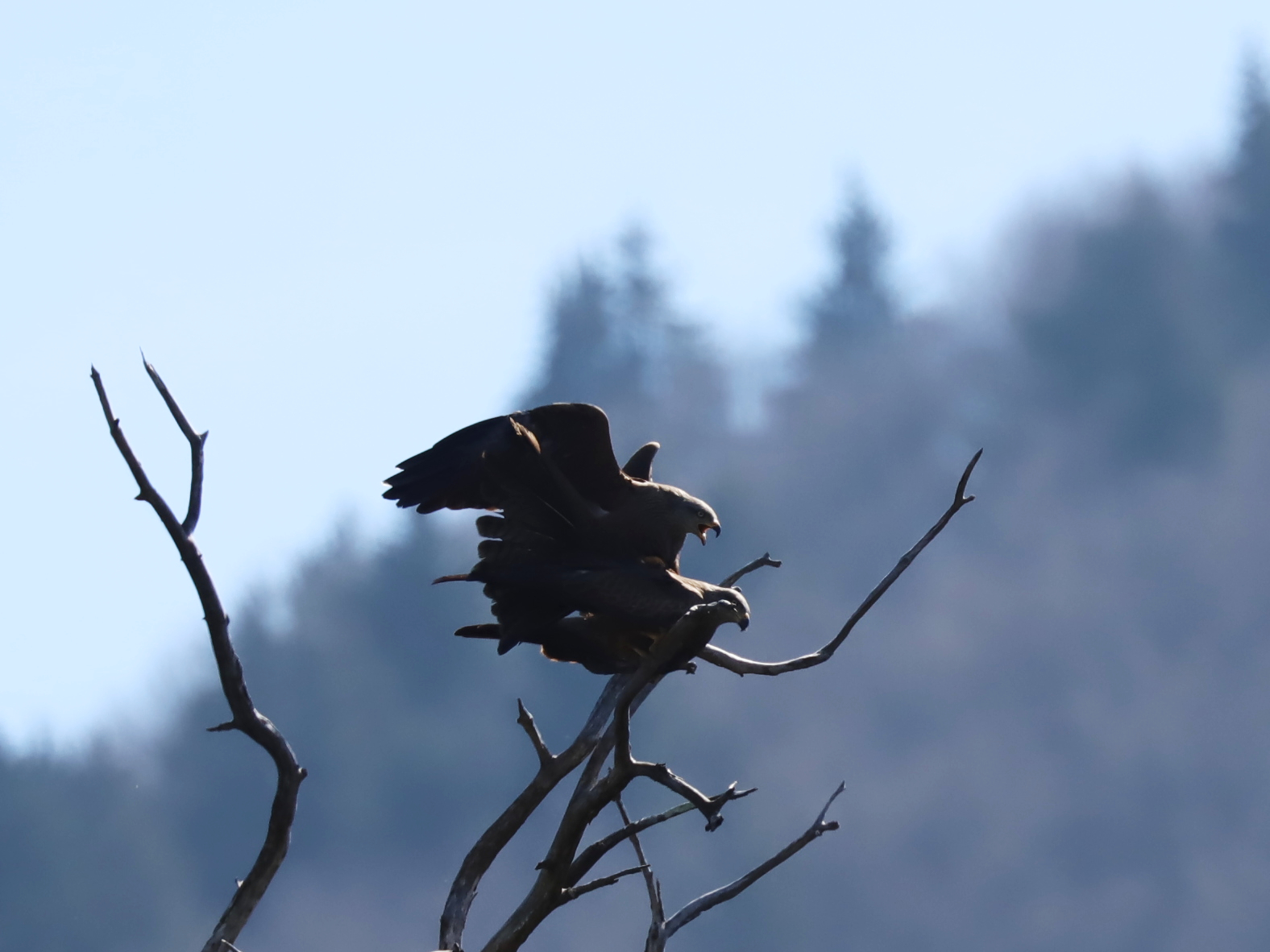 … mais ce que j’ai pu capter cette semaine ce sont les acrobaties des Milans noirs. Ces images sont le résultat de plusieurs observations distinctes.