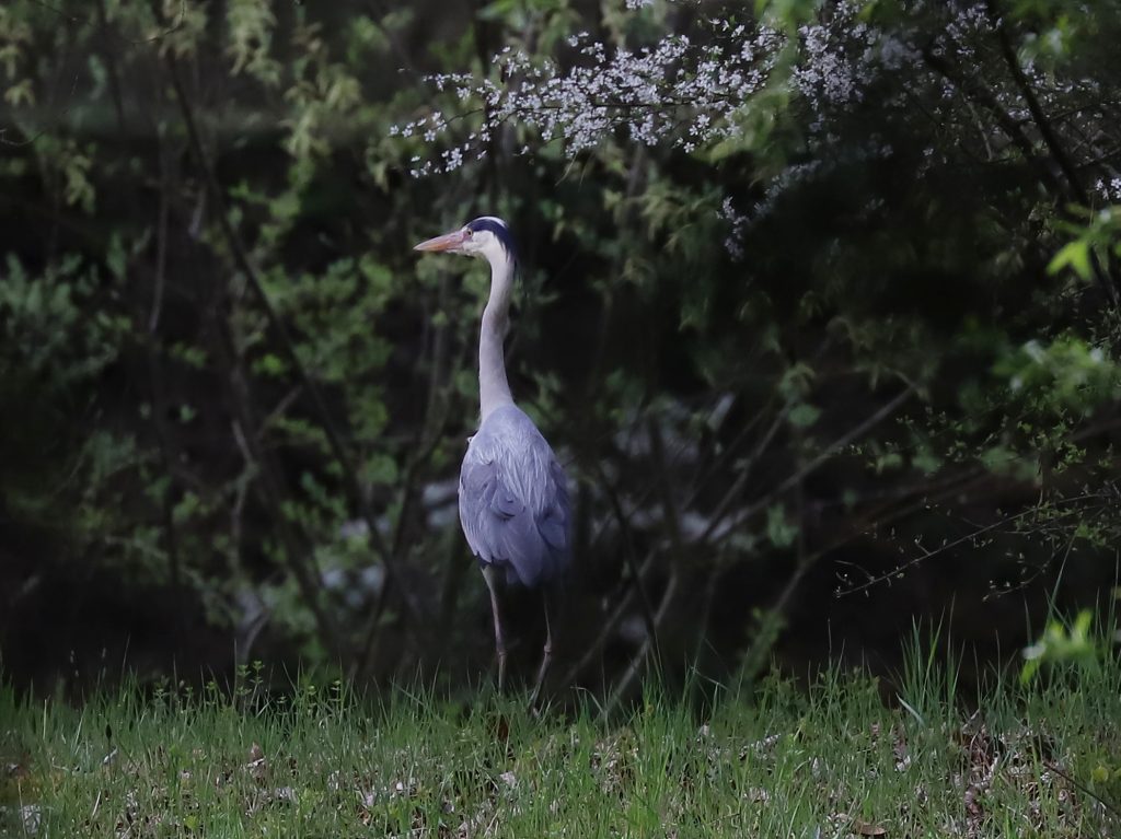 Le Héron cendré Ardea cinerea ne se laisse pas impressionner et se dresse de toute sa hauteur pour faire dégager devant lui.