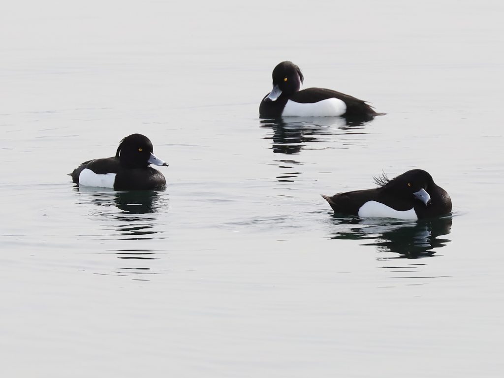 … et des Mouettes rieuses Chroicocephalus ridibundus en plumage internuptial, juste une tache derrière l’oeil et non plus la tête brun-noir.