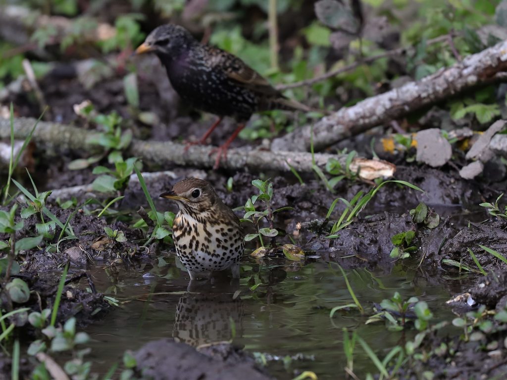 … une autre femelle de Fauvette à tête noire Sylvia atricapilla, qui attend le départ d’un Gobemouche noir Ficedula hypoleuca pour prendre son bain …