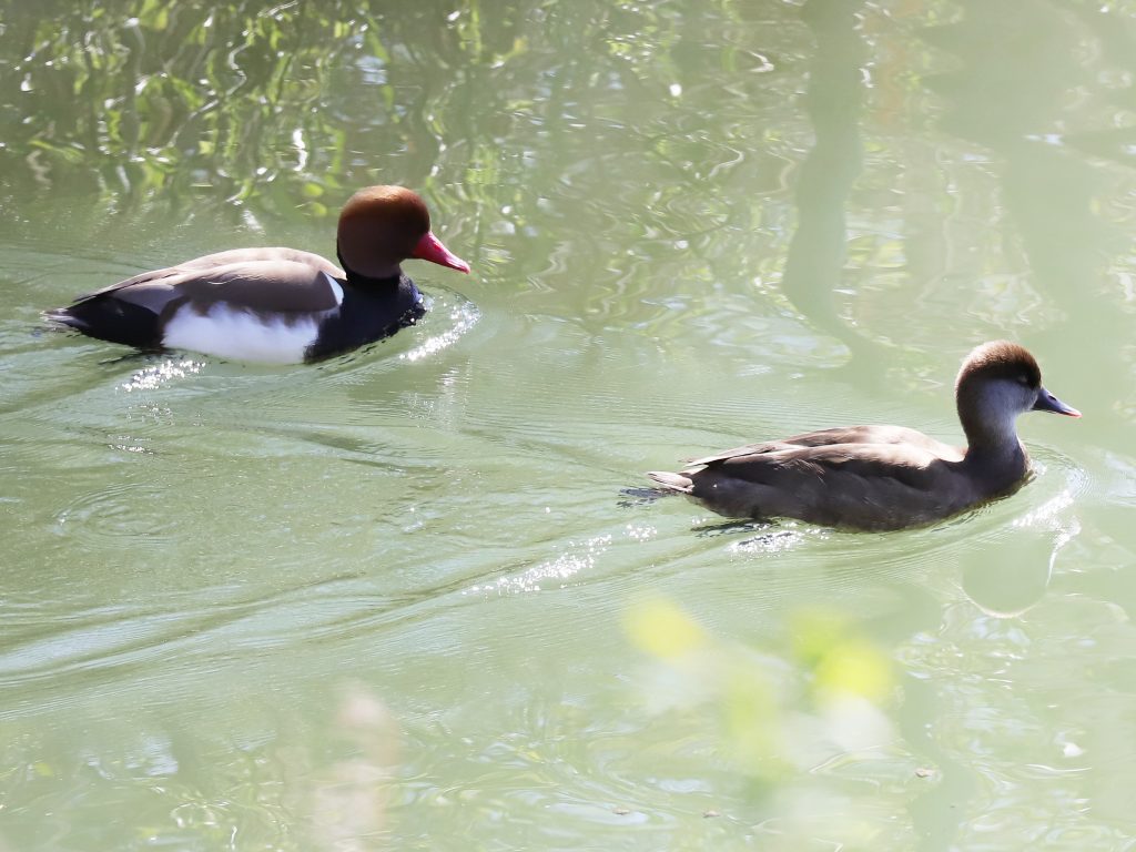 Chez les Grèbes huppés, les gestes de parade – collerette gonflée et mouvement de tête synchronisés – ont lieu presque tout au long de l’année.
