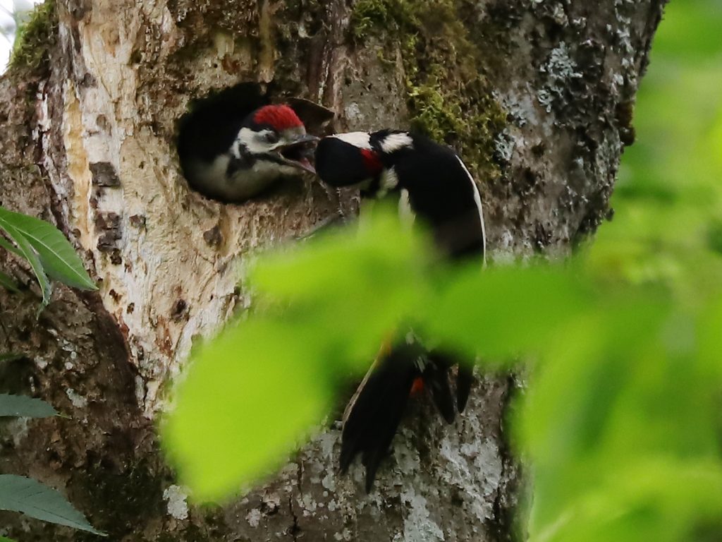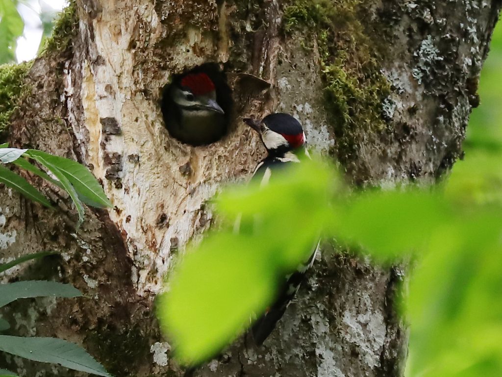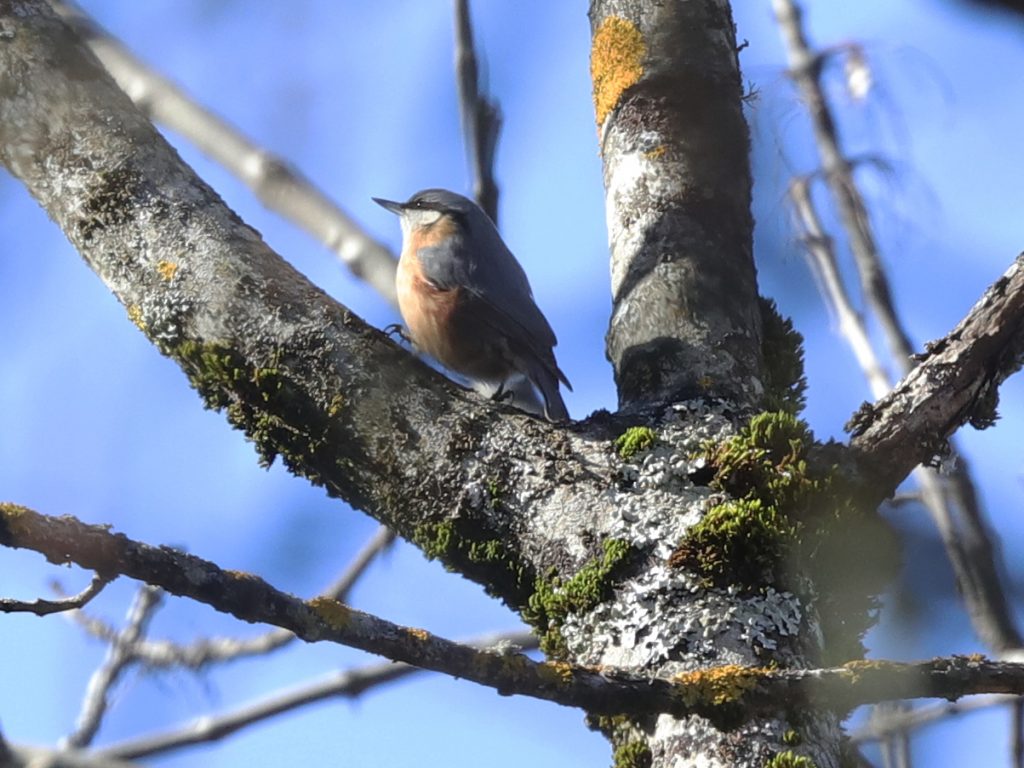 Les Pics épeiche Dendrocopos major sont très discrets à cette saison mais ils se trahissent quand ils frappent les troncs pour déloger les insectes.