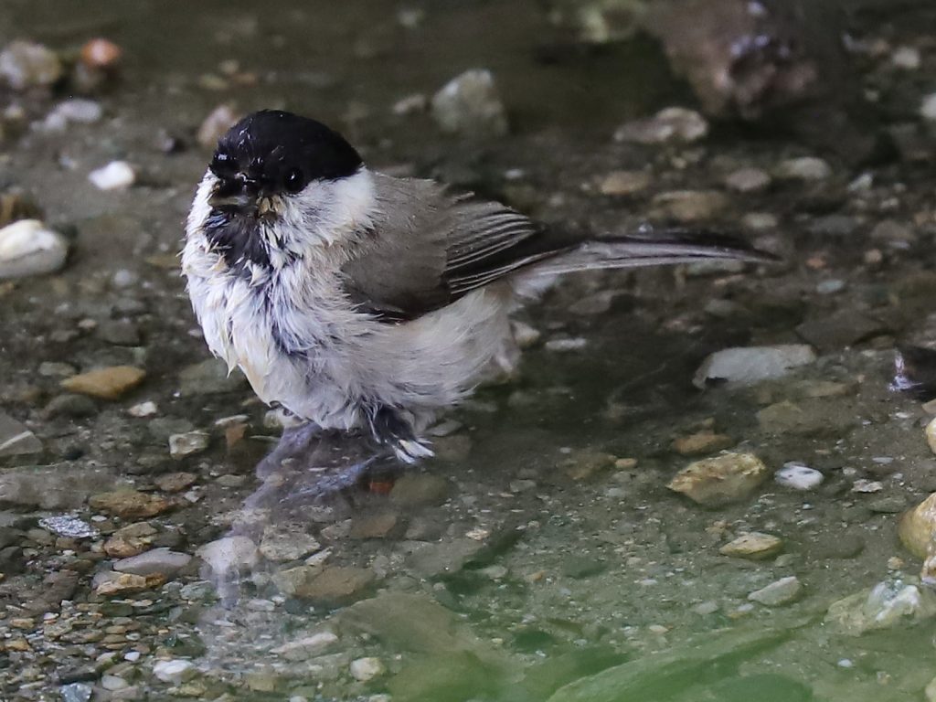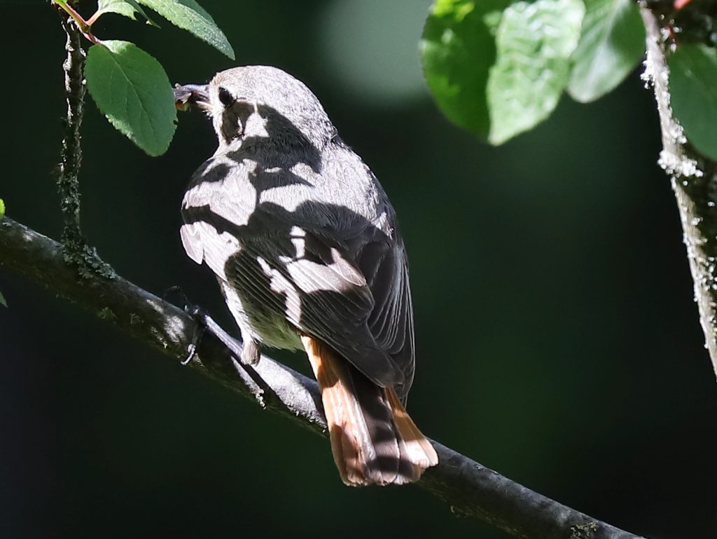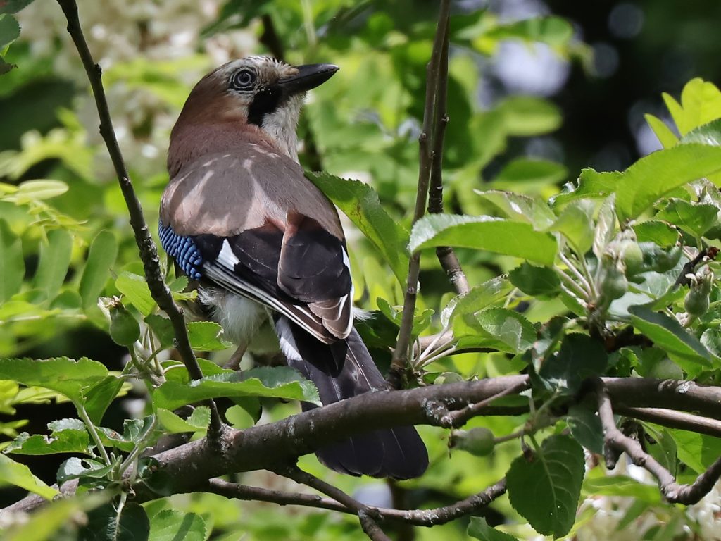 Curieusement, au milieu du ballet des Gobemouches capturant des insectes, un intrus s’était glissé discrètement, une femelle de Fauvette à tête noire Sylvia atricapilla.