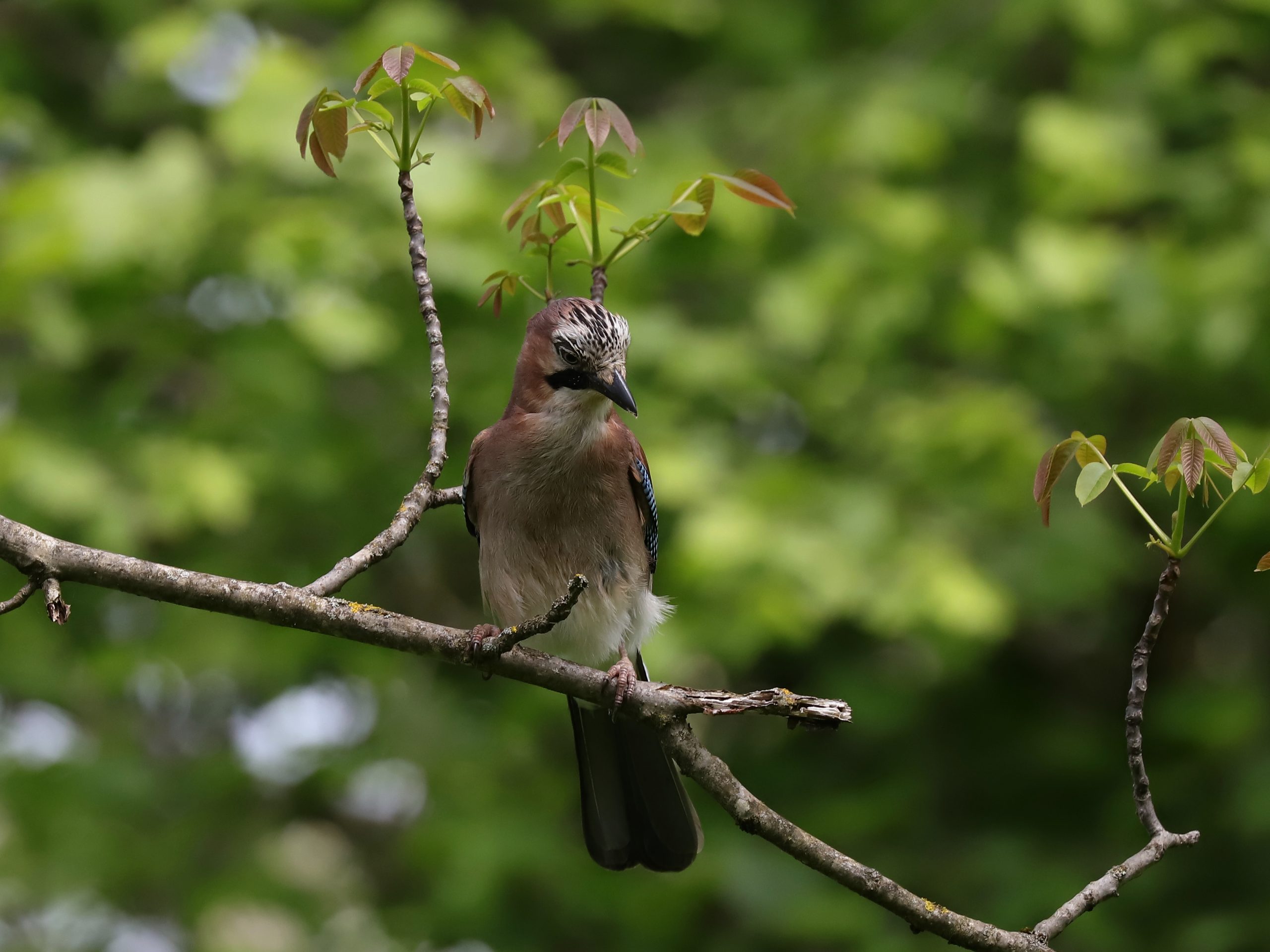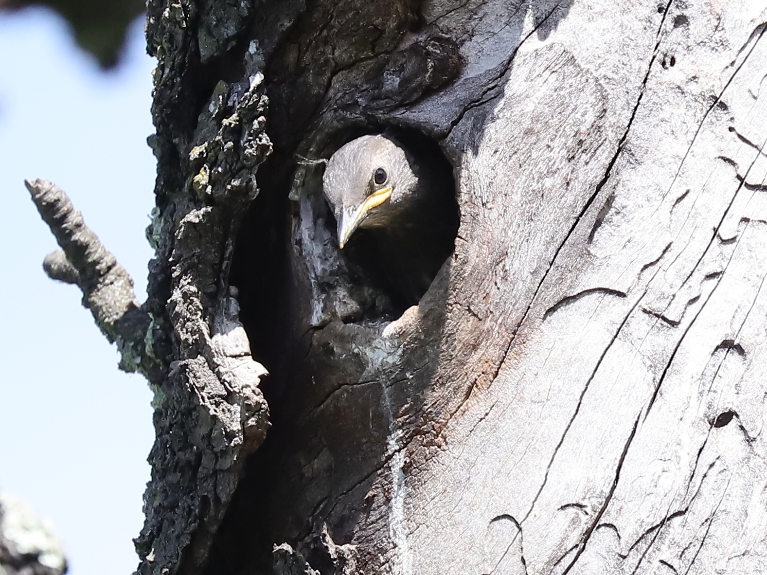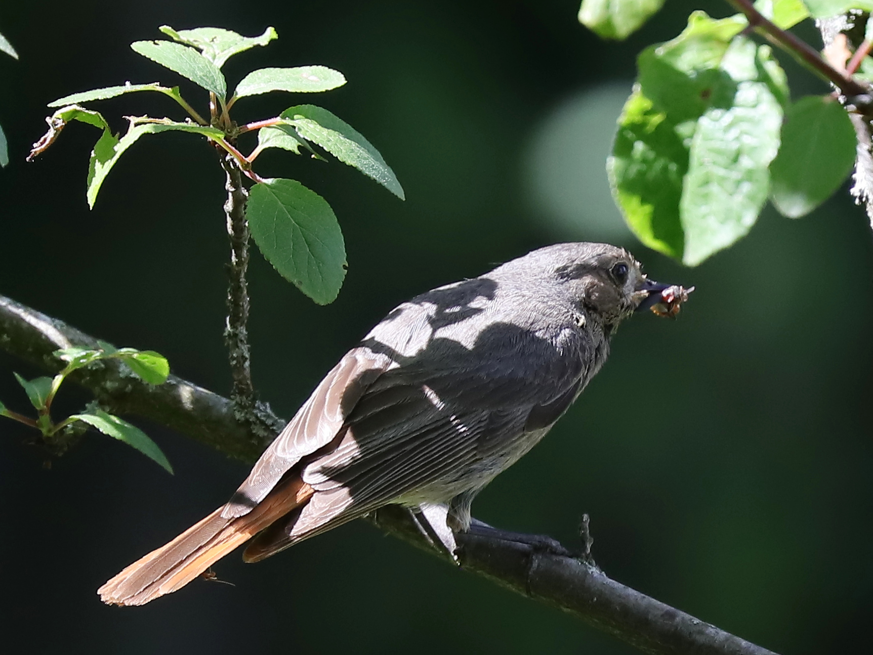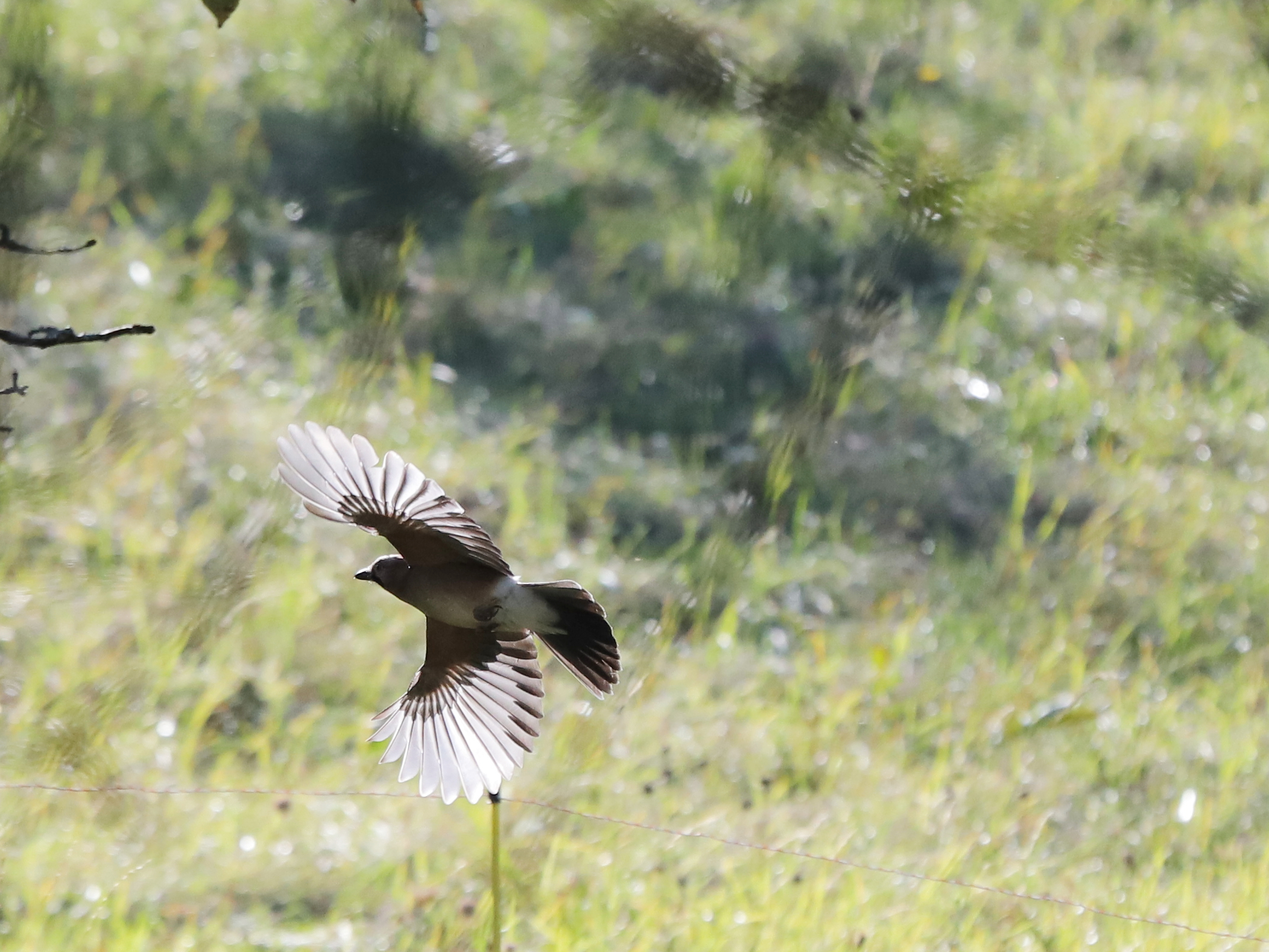 Curieusement, au milieu du ballet des Gobemouches capturant des insectes, un intrus s’était glissé discrètement, une femelle de Fauvette à tête noire Sylvia atricapilla.
