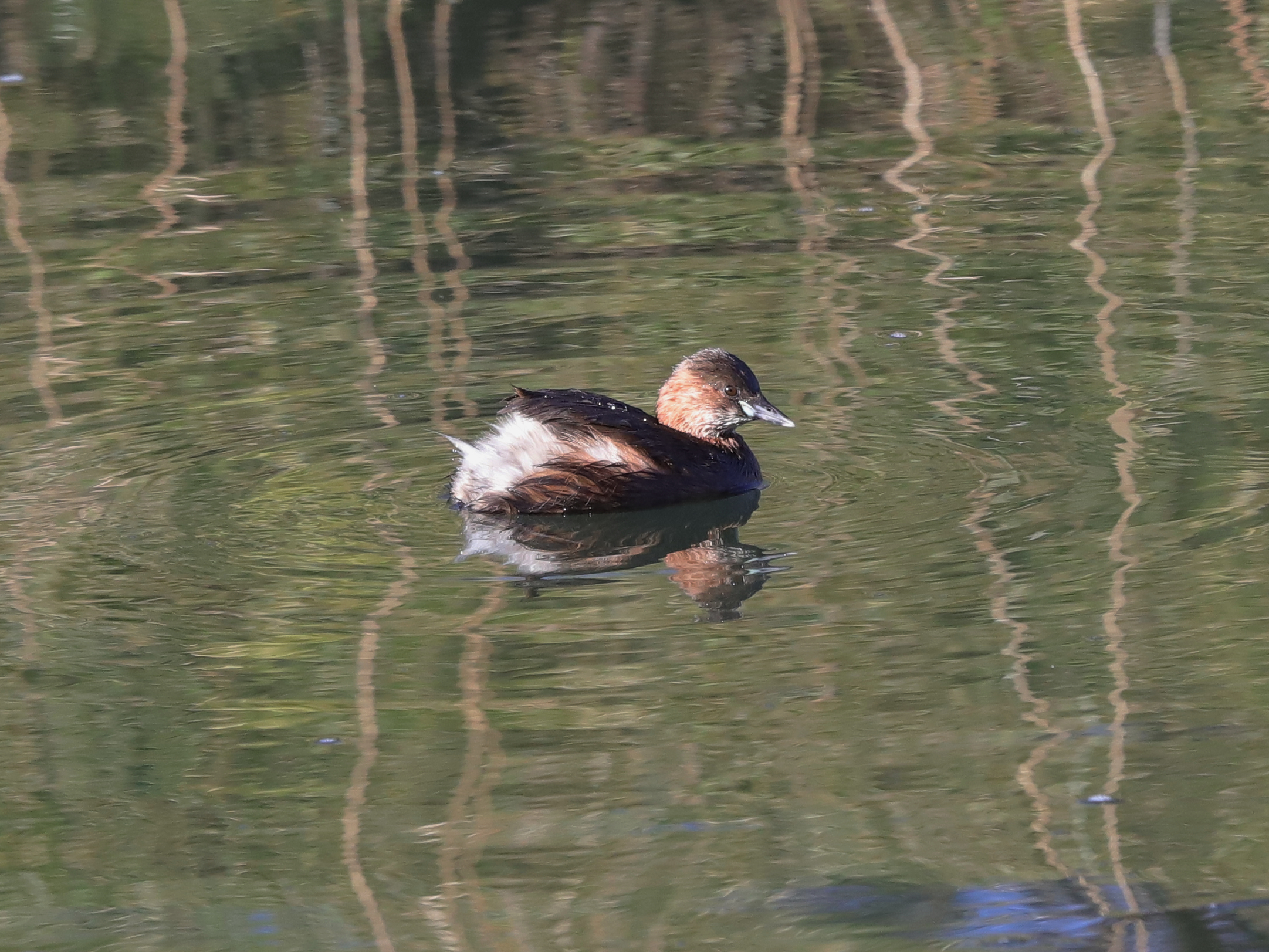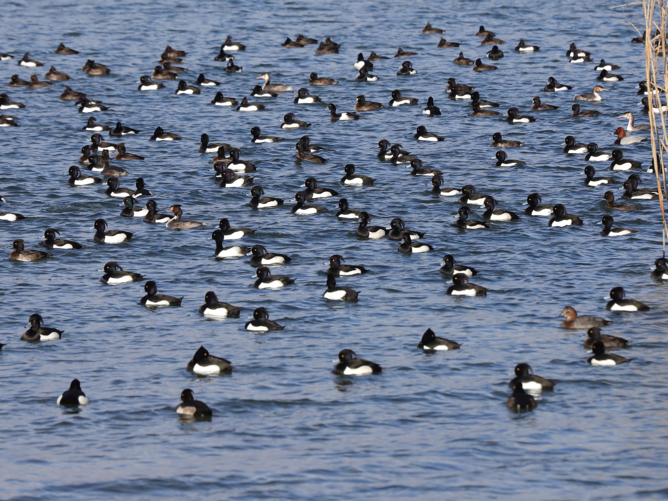 Je suis allé explorer une réserve le long du Rhône en aval de Genève, la réserve du Nant de Borbaz. On se trouve très haut sur les rives par rapport au fleuve, c’est donc peu pratique pour photographier les oiseaux comme les hérons, cormorans ou cygnes que l’on aperçoit sur cette photo même si le paysage est beau et inattendu si proche de la ville.