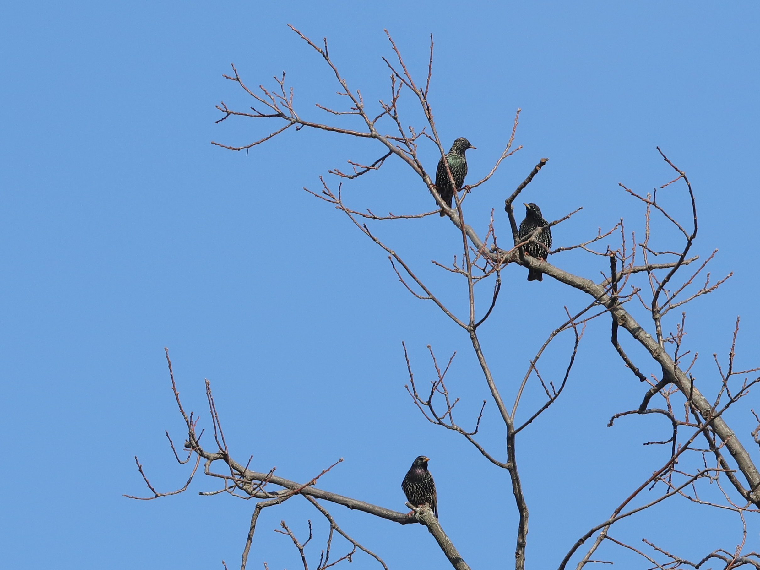 Les Pics épeiche Dendrocopos major sont très discrets à cette saison mais ils se trahissent quand ils frappent les troncs pour déloger les insectes.