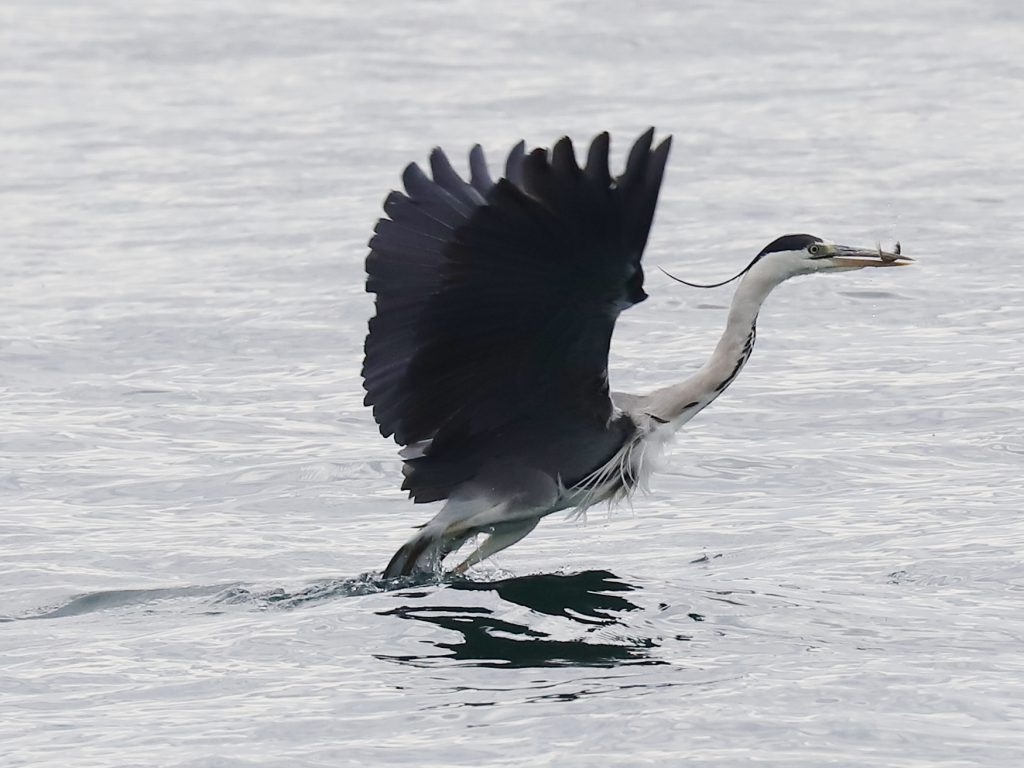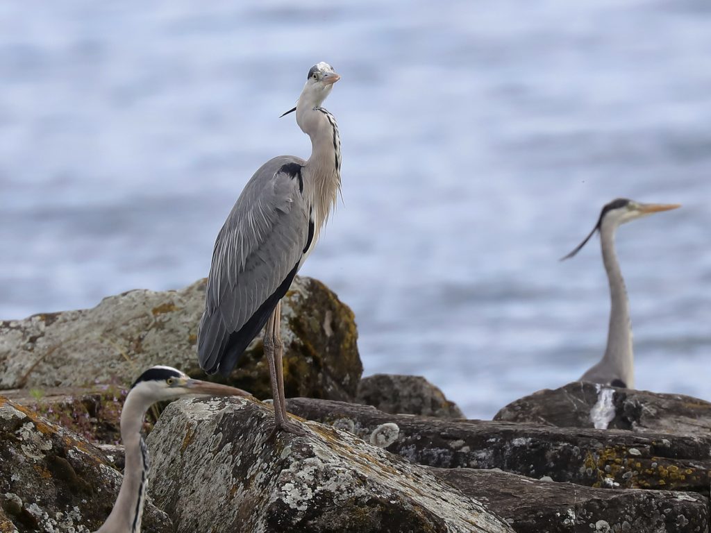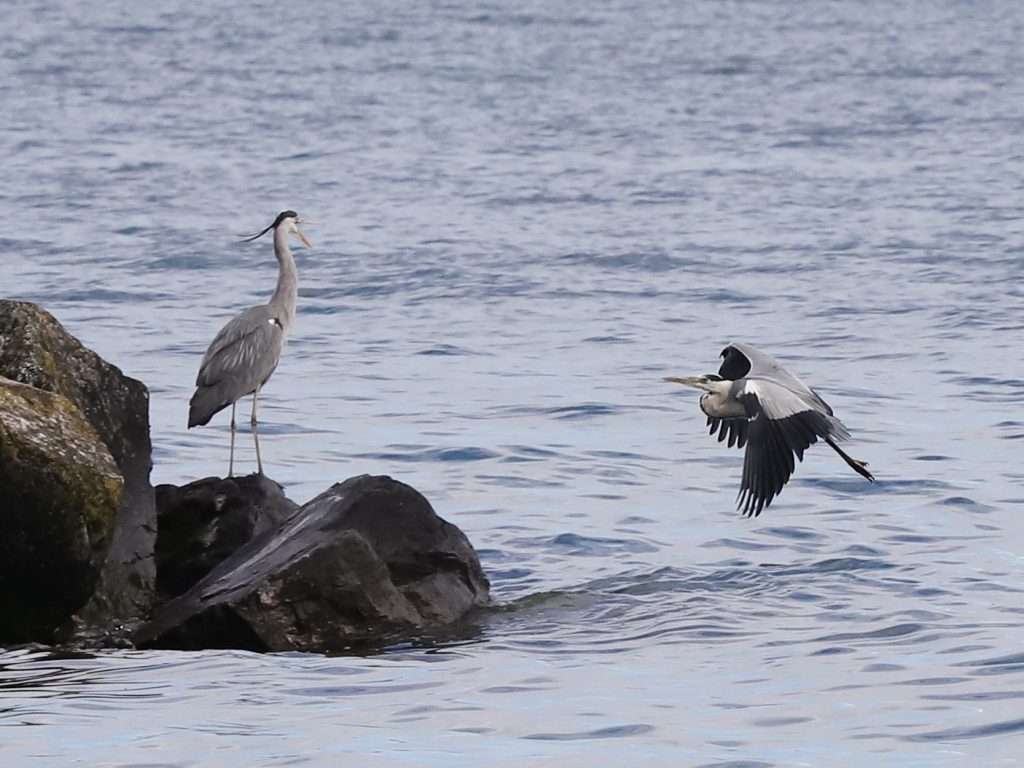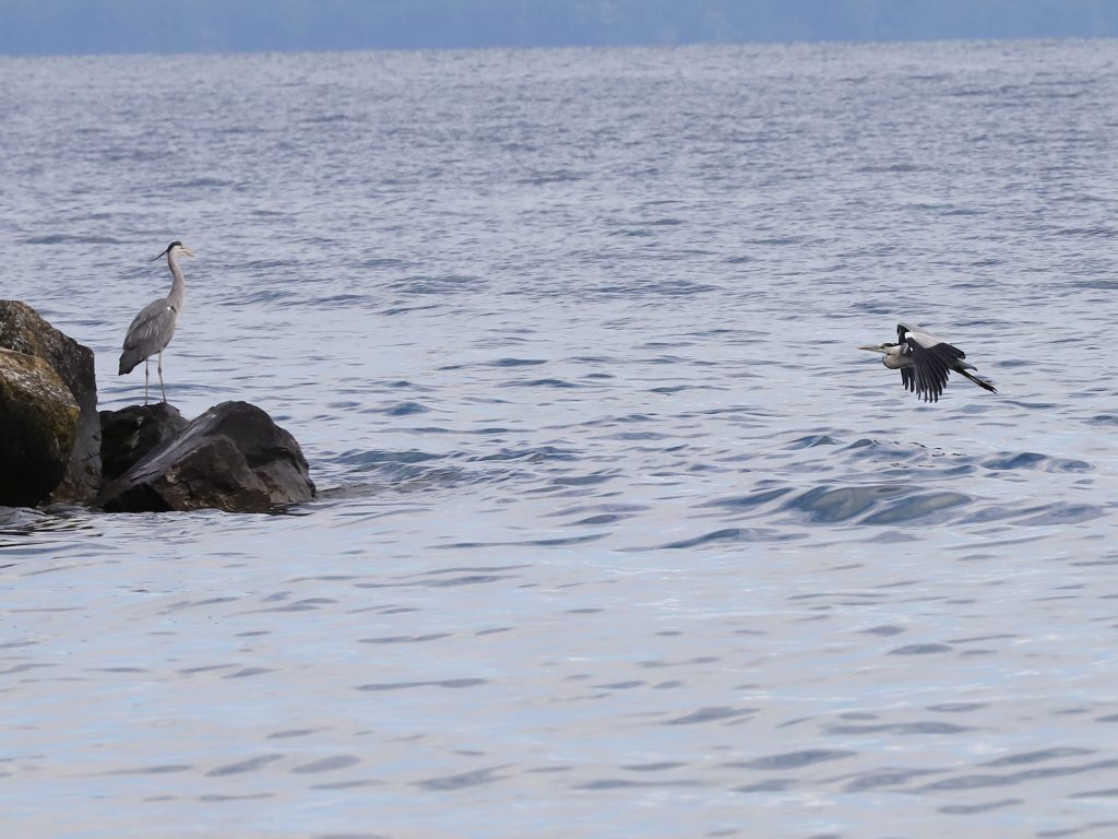 Derniers oiseaux du lac, les Hérons cendrés Ardea cinerea, dont une partie de la population migre alors que d’autres restent à l’année.