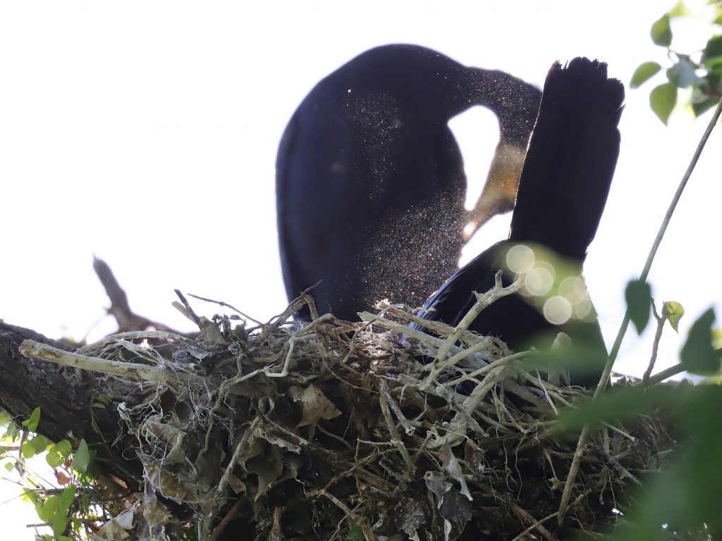Pendant que certains se sèchent, d’autres prennent leur bain, ce qui permet de lisser le plumage, comme chez tous le oiseaux.