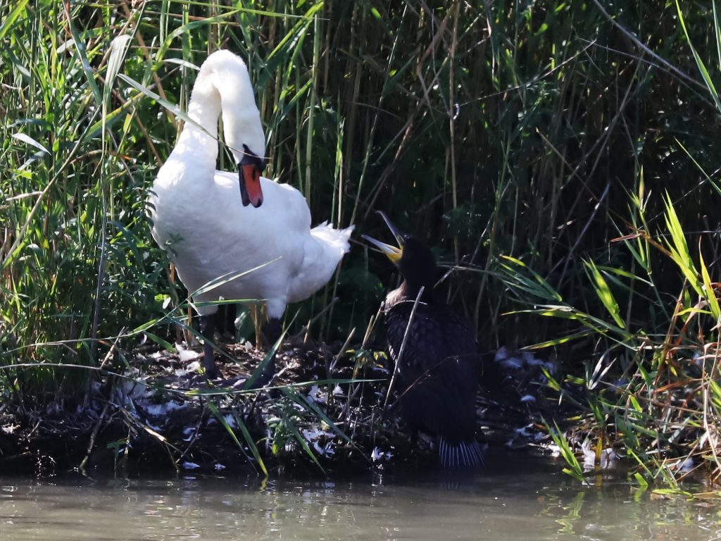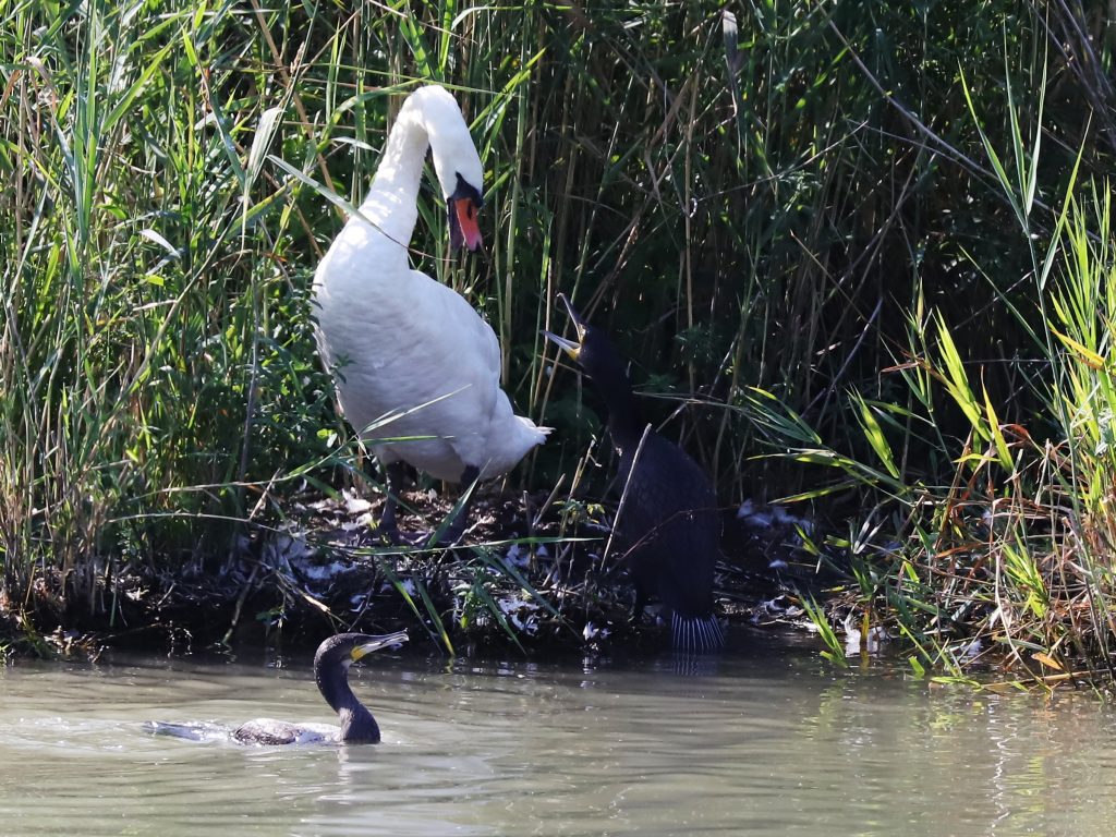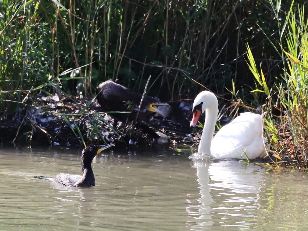 Les autres prédateurs du lac, ce sont les Grands cormorans Phalacrocorax carbo. D’en voir une bande sous mes fenêtres, j’ai eu envie d’aller les observer de plus près.