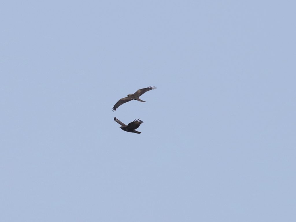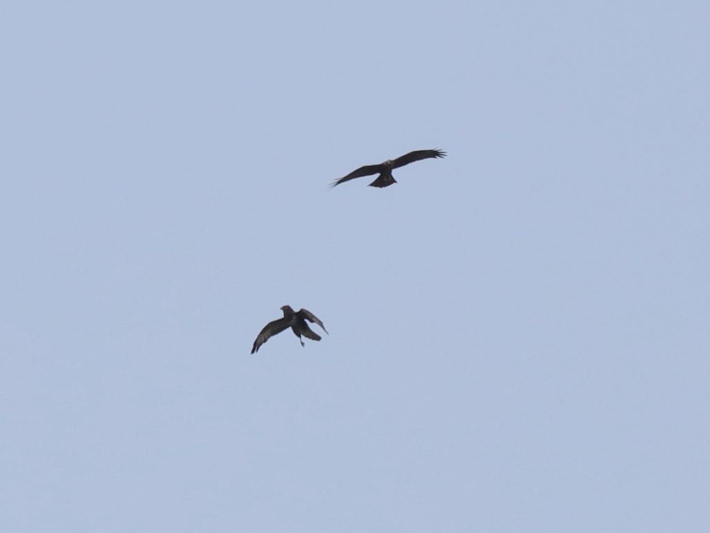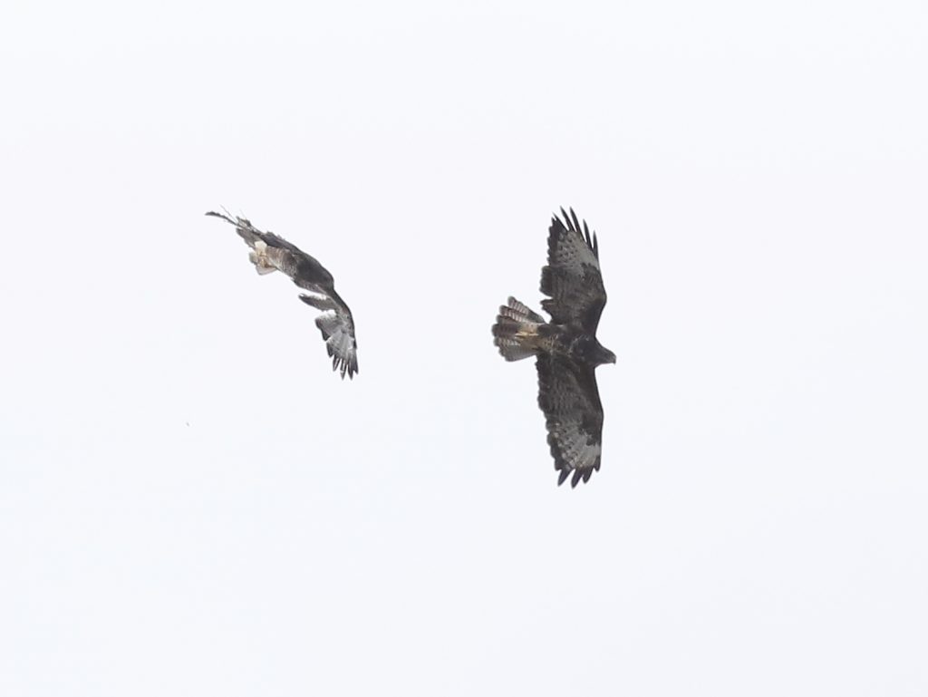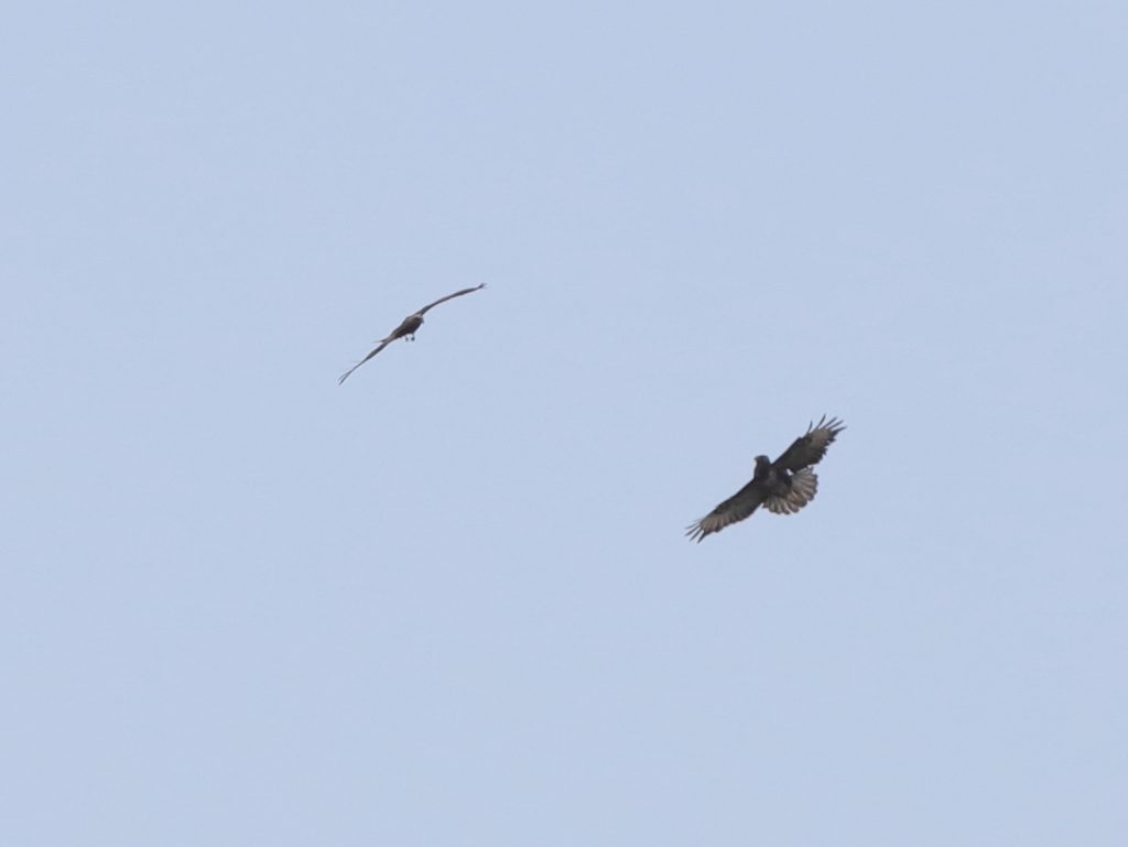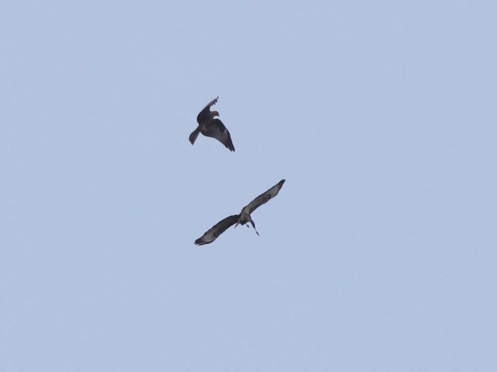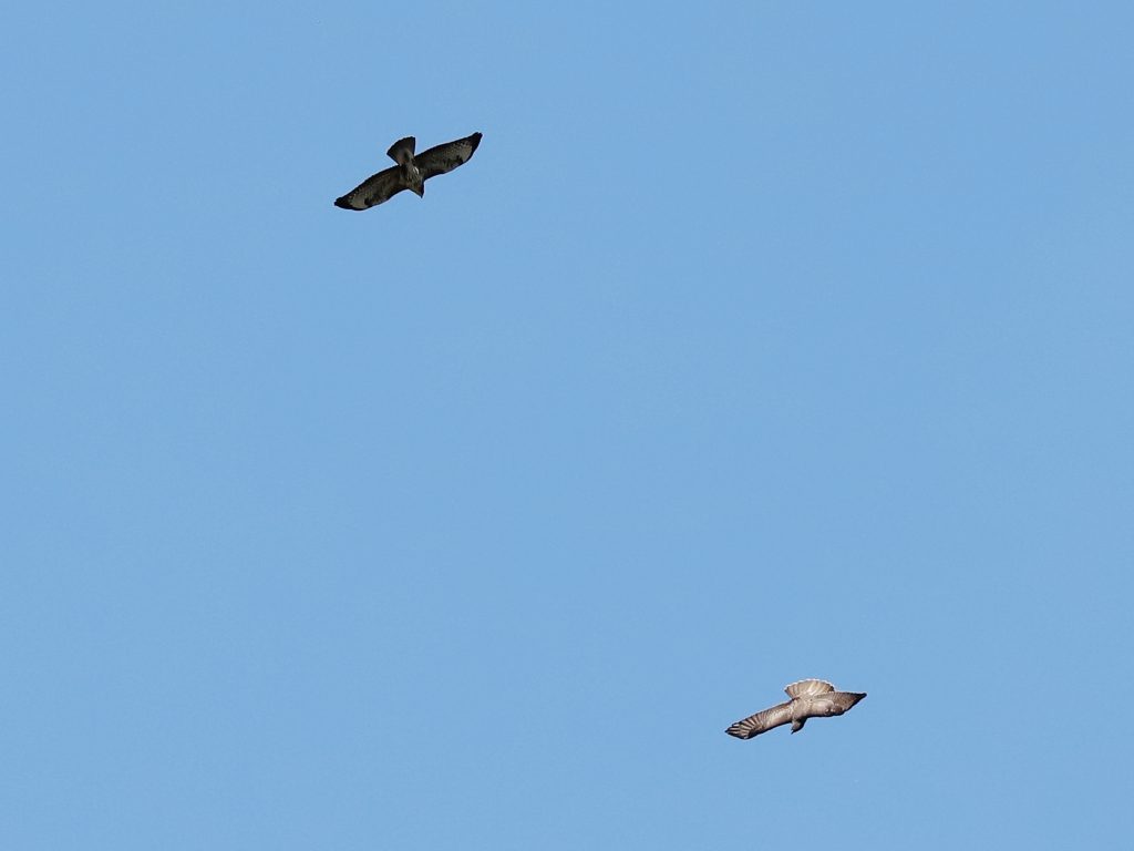 Il s’agit peut-être de migrateurs car il est rare de voir deux Eperviers d’Europe Accipiter nisus cercler ensemble pour prendre de l’altitude.