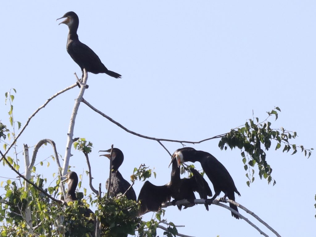 Les autres prédateurs du lac, ce sont les Grands cormorans Phalacrocorax carbo. D’en voir une bande sous mes fenêtres, j’ai eu envie d’aller les observer de plus près.