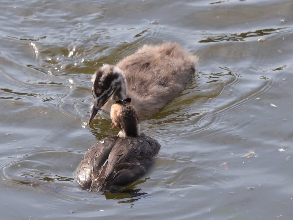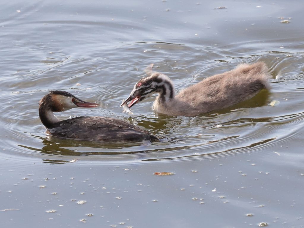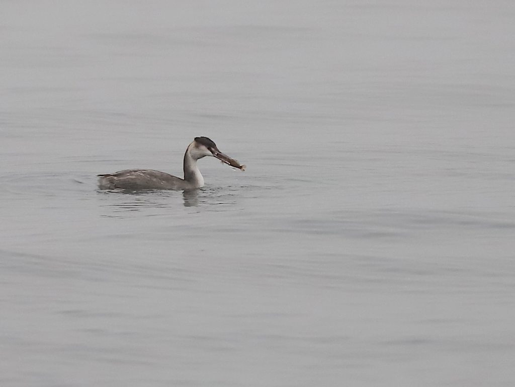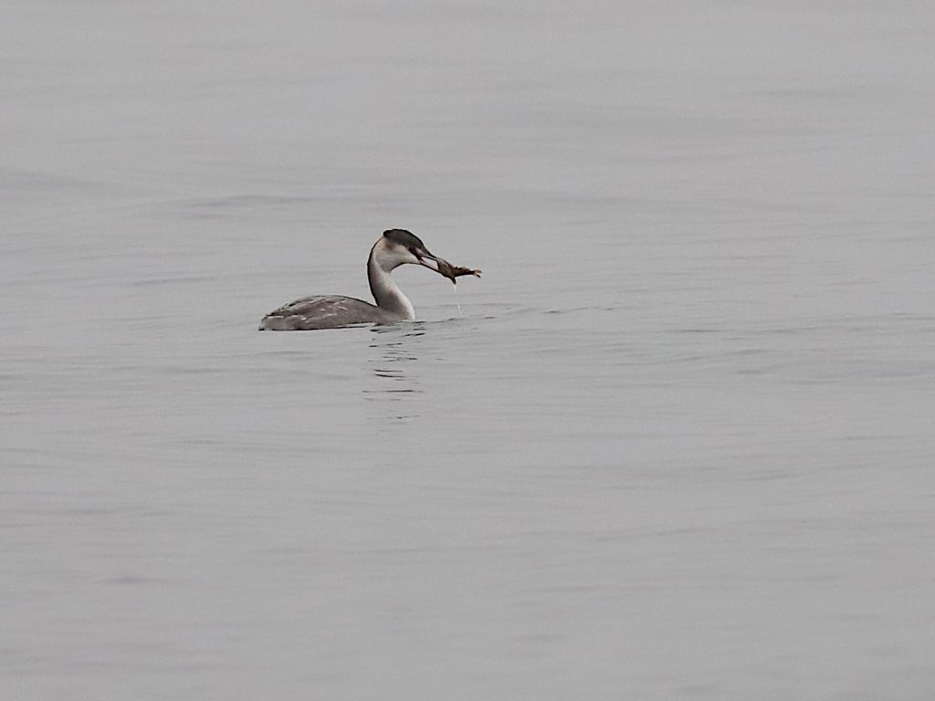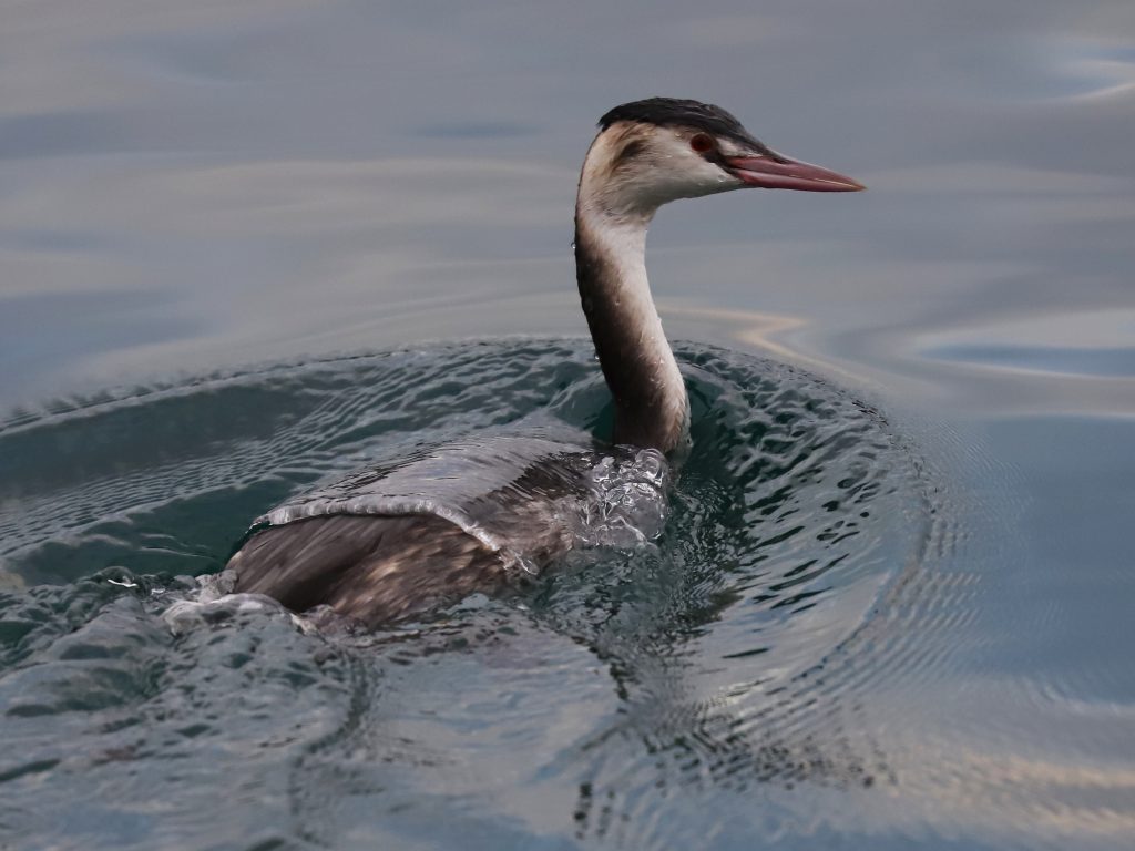 Les Grèbes huppés Podiceps cristatus se regroupent pour l’hiver, parfois plus d’une centaine d’oiseaux ensemble.