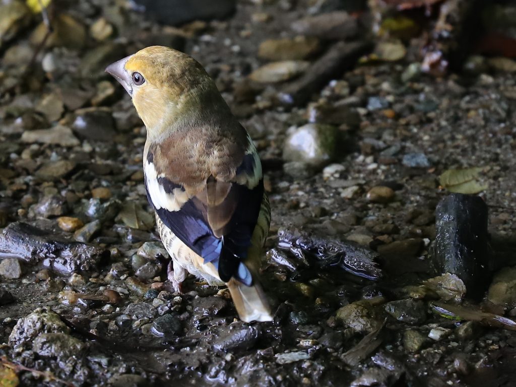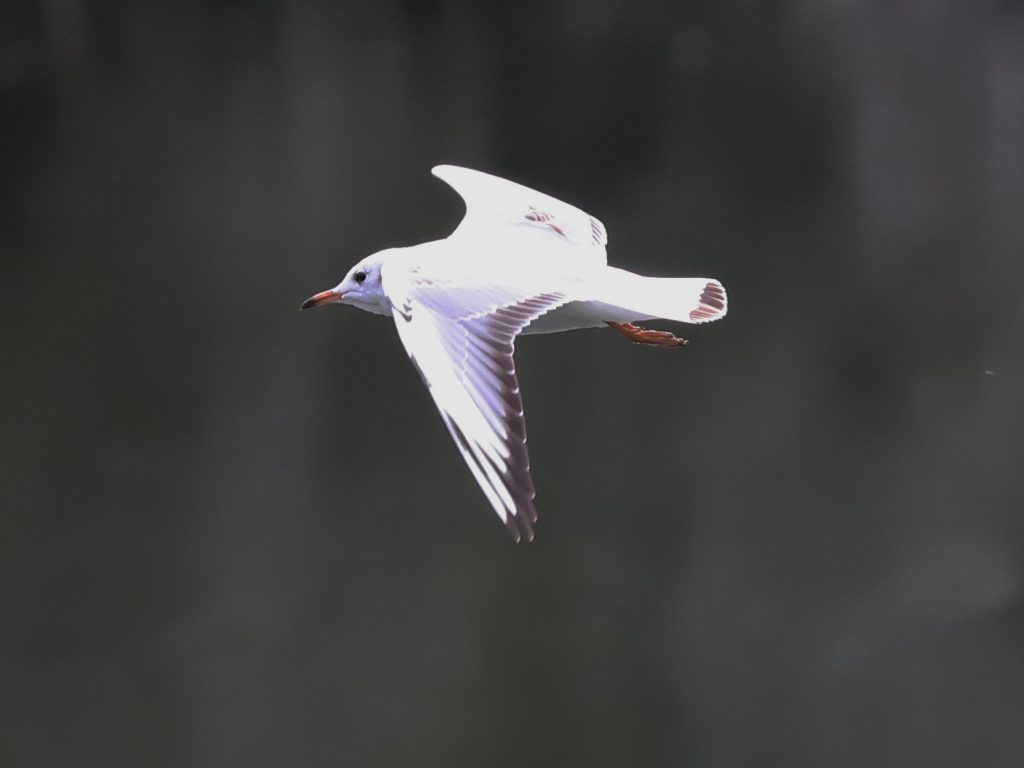En bord de lac, il y avait aussi des Mouettes rieuses Chroicocephalus ridibundus, immatures aux ailes marqué de brun et adultes aux ailes grises et pointes noires.