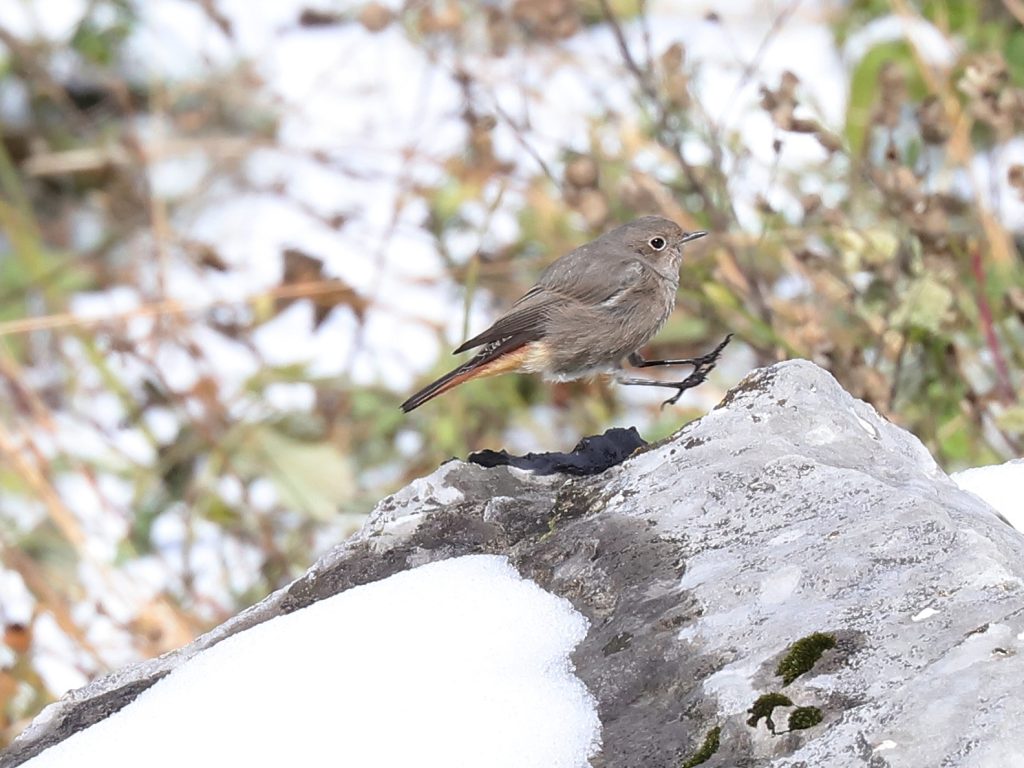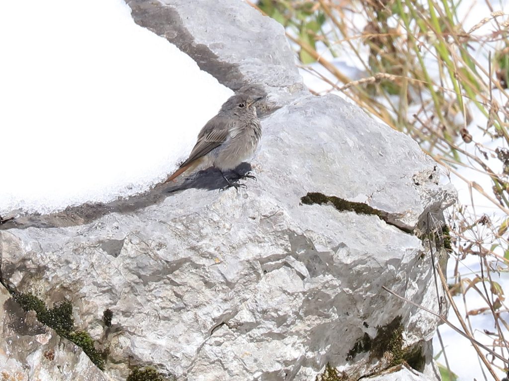 Ce Rougequeue à front blanc Phoenicurus phoenicurus, femelle, était un peu éloigné mais comme je n’en vois pas souvent, je l’ai photographié pour vérifier l’identification.